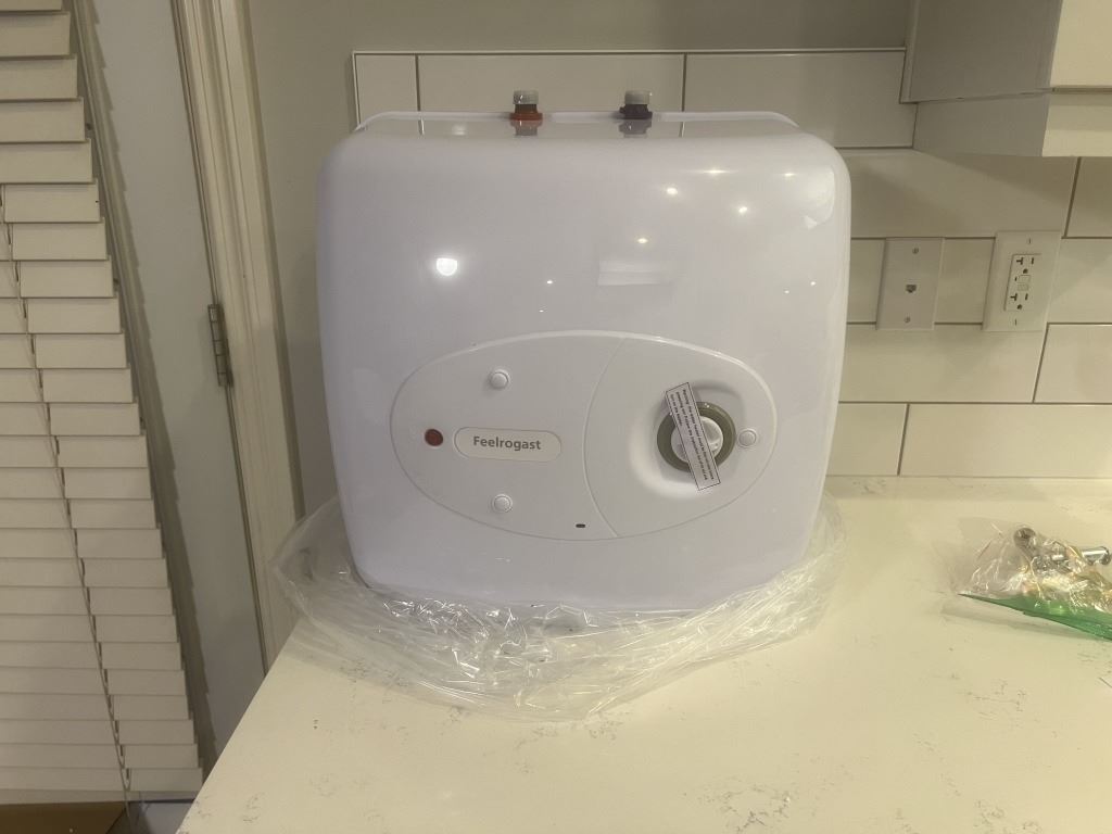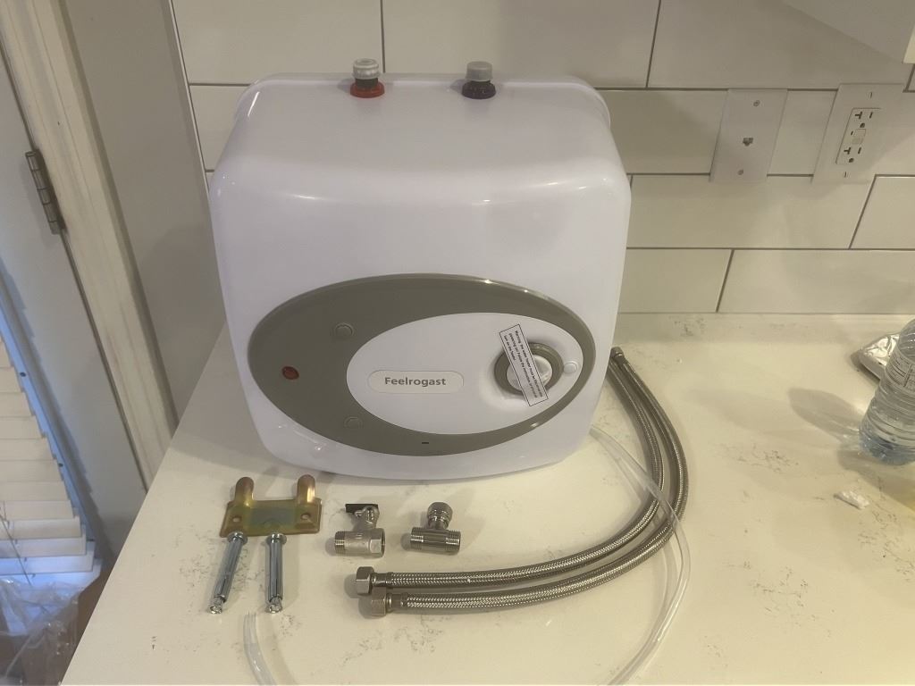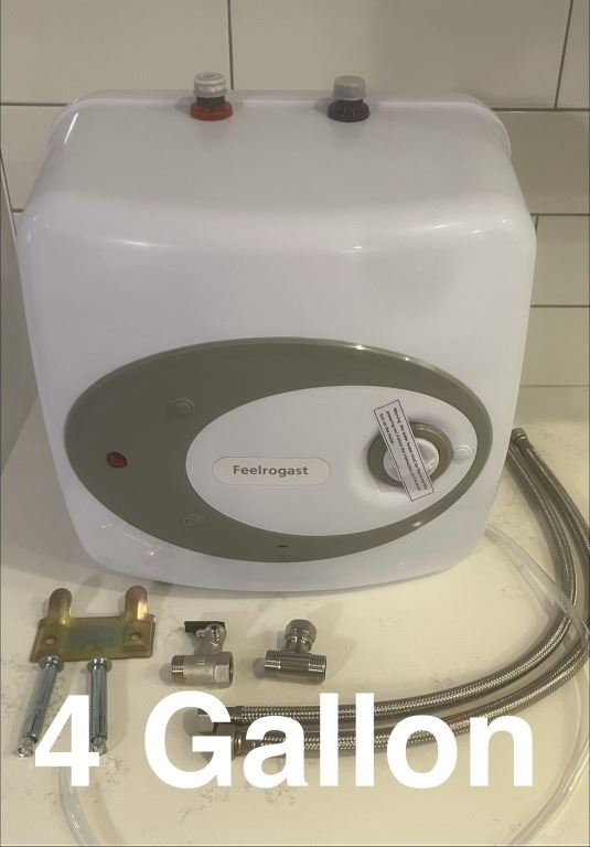 NEW WATER HEATER, 4 GALLON 110/120V PLUG IN, INCLUDES INSTALL HARDWARE