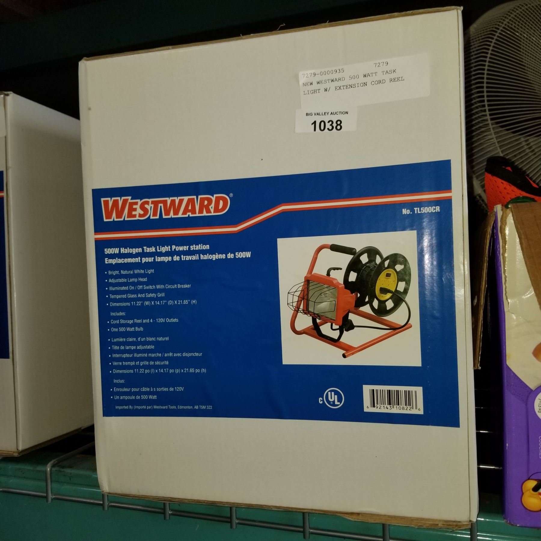 NEW WESTWARD 500 WATT TASK LIGHT W/ EXTENSION CORD REEL