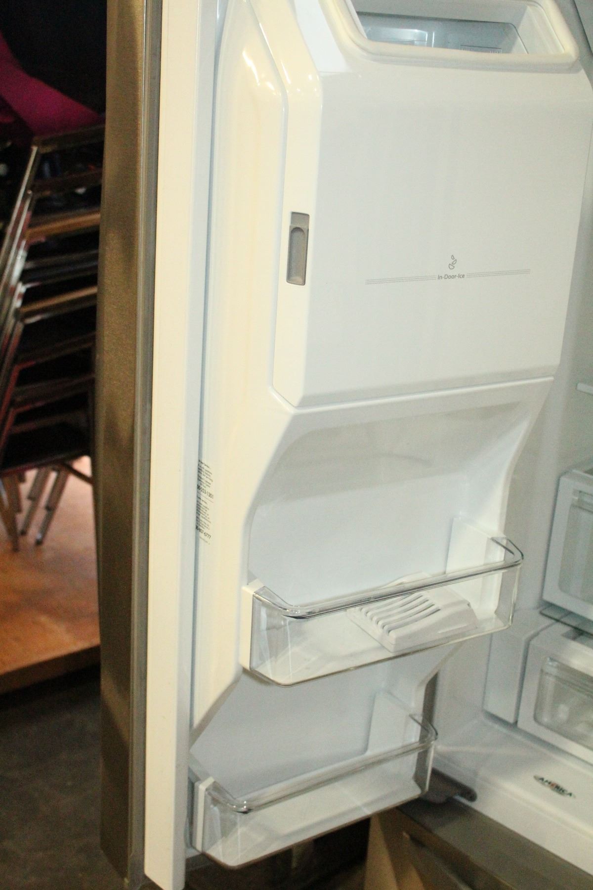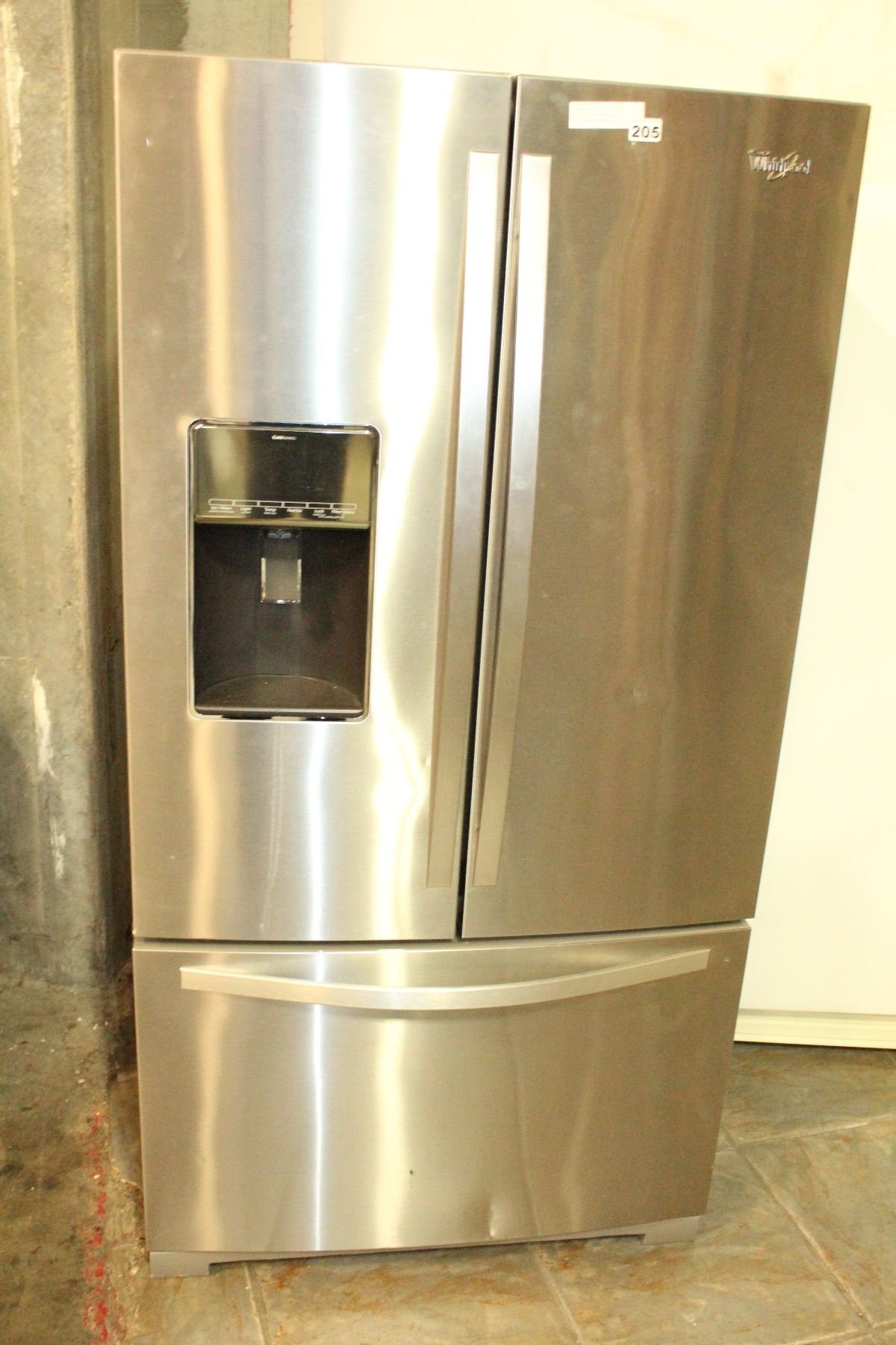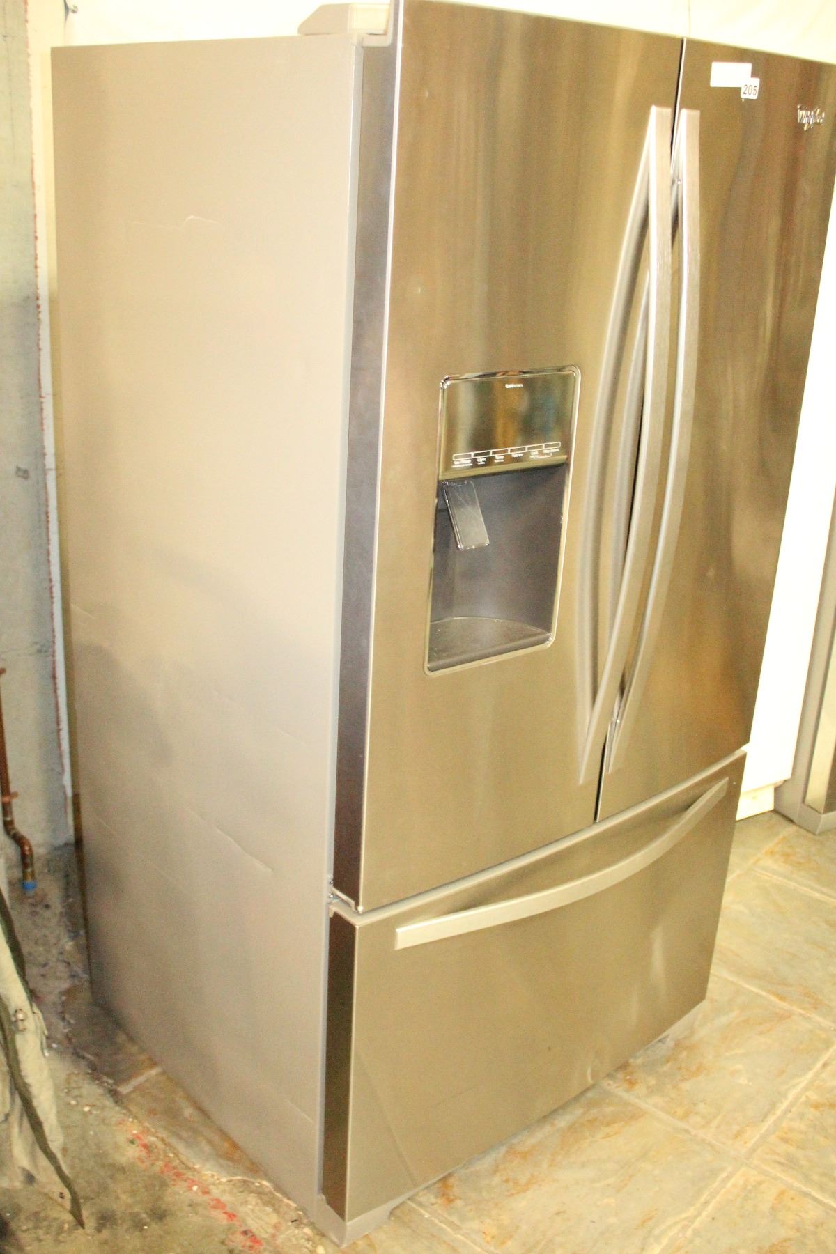 NEW WHIRLPOOL STAINLESS FRENCH DOOR REFRIDGERATOR WITH BOTTOM FREEZER WITH WATER AND ICE, RETAIL $28