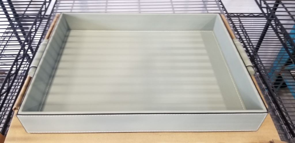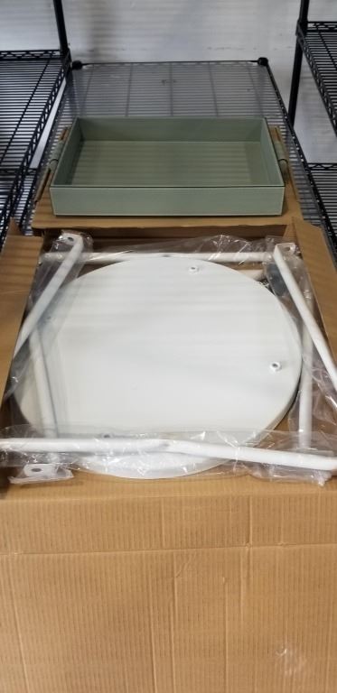 NEW WHITE ROUND SIDE TABLE AND HANDMADE LEATHER TRAY