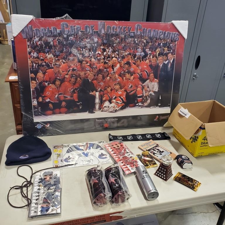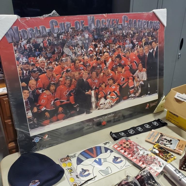 NEW WORLD CUP OF HOCKEY PRINT AND ASSORTED HOCKEY COLLECTIBLES