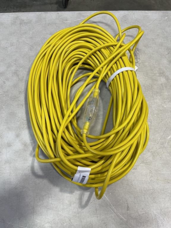 NEW YELLOW INDOOR OUTDOOR 200FT HEAVY DUTY LIGHTED EXTENSION CORD, 16AWG, 3 WIRE