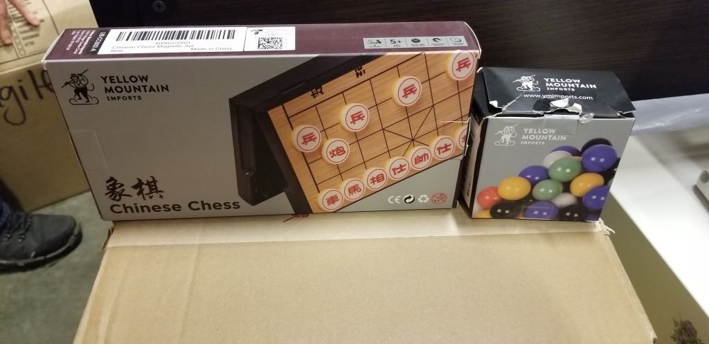 NEW YELLOW MOUNTAIN D12 DOMINOS SET WITH WOODEN BOX, YELLOW MOUNTAIN CHINESE CHESS SET AND 60 MARBLE SET