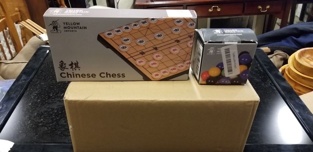 NEW YELLOW MOUNTAIN D12 DOMINOS SET WITH WOODEN BOX, YELLOW MOUNTAIN CHINESE CHESS SET AND 60 MARBLE SET
