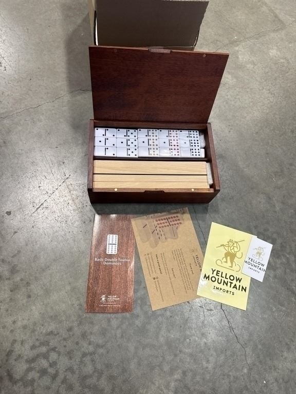NEW YELLOW MOUNTAIN DOUBLE 12 DOMINOS SET IN WOOD CASE