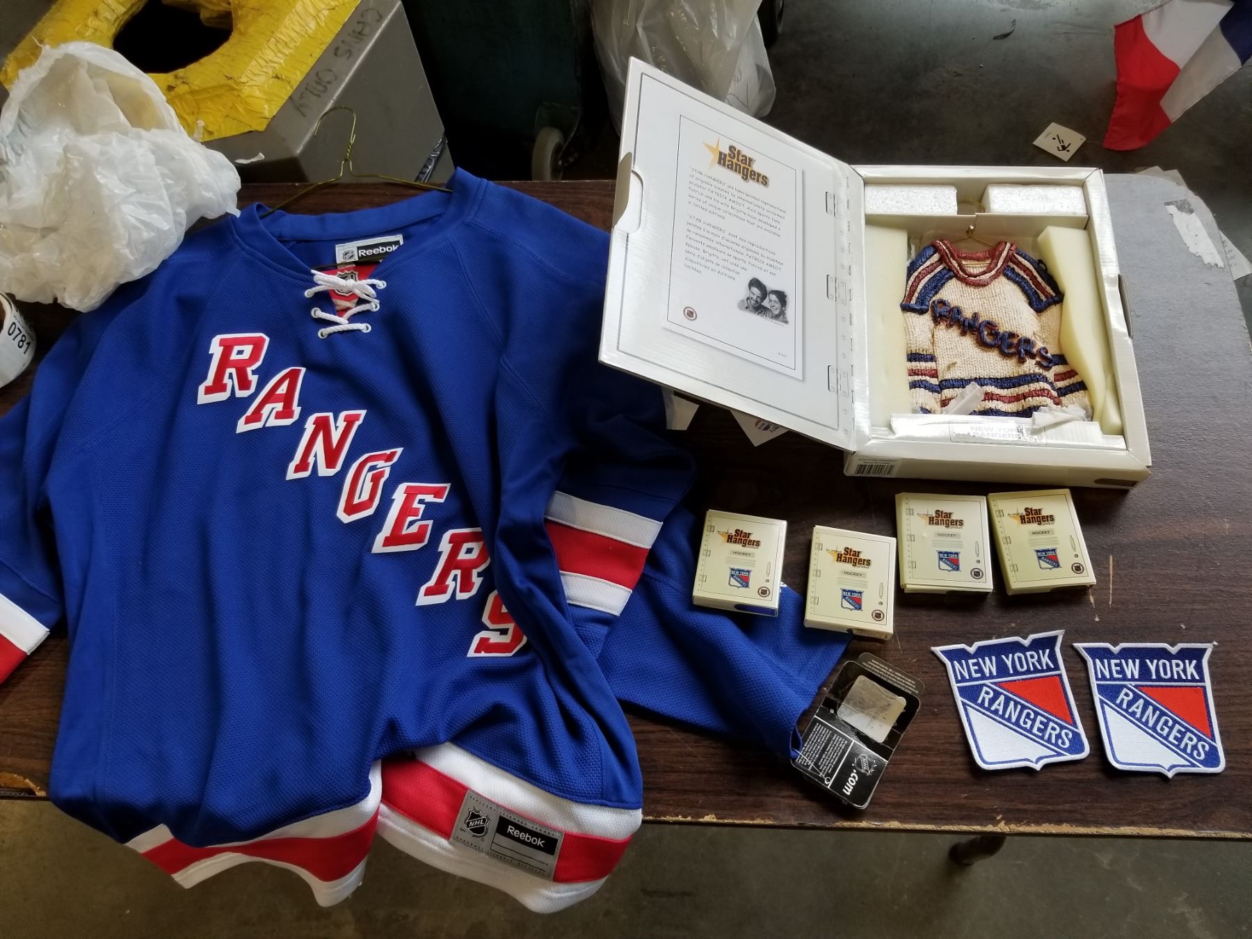 NEW YORK RANGERS JERSEY 2 PATCHES, 1 LARGE AND 3 MINI HANGERS NHL LOT - RETAIL $250