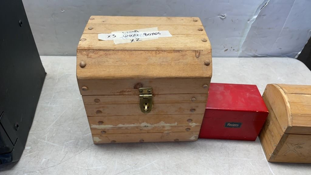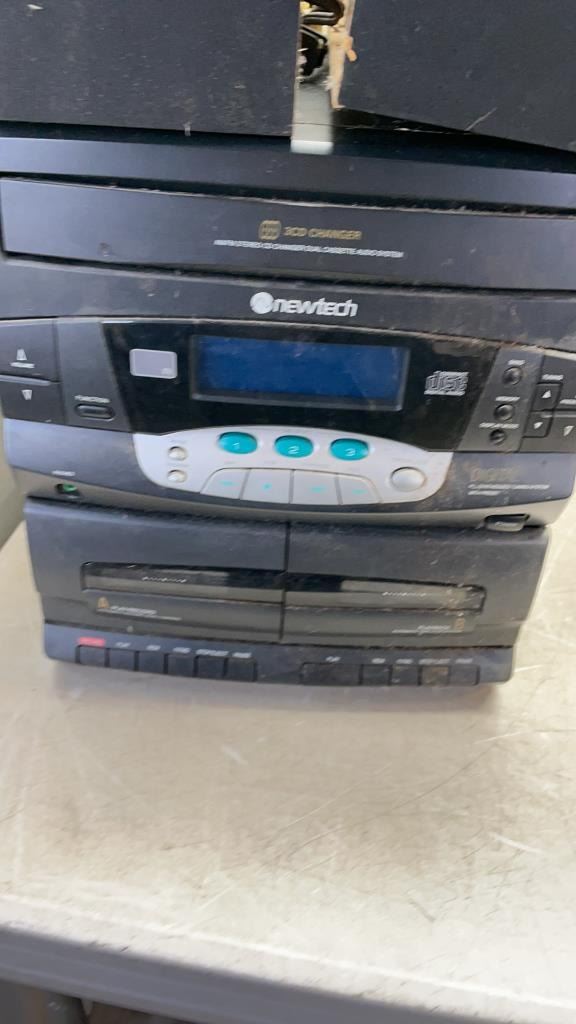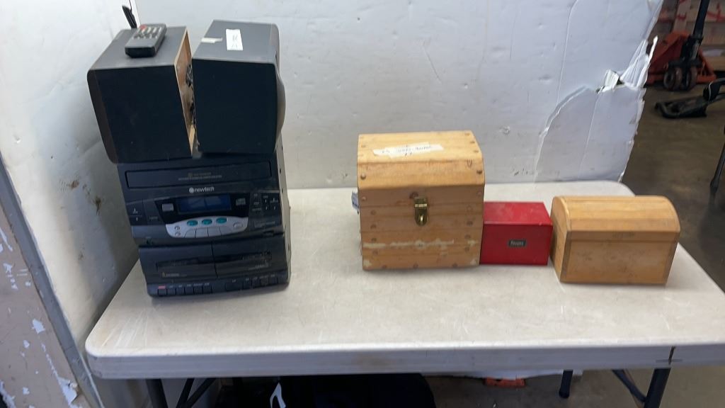 NEWTECH STEREO AND 3 WOODEN BOXES