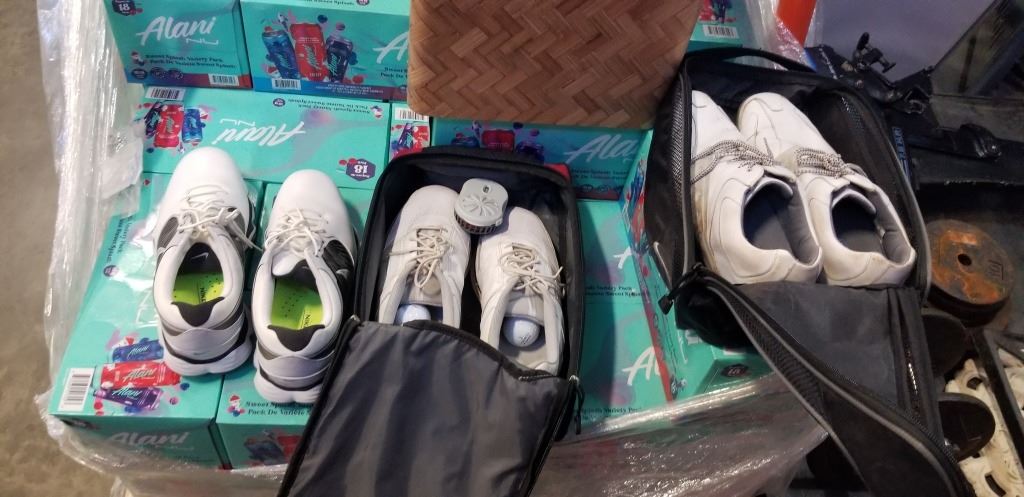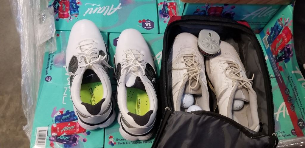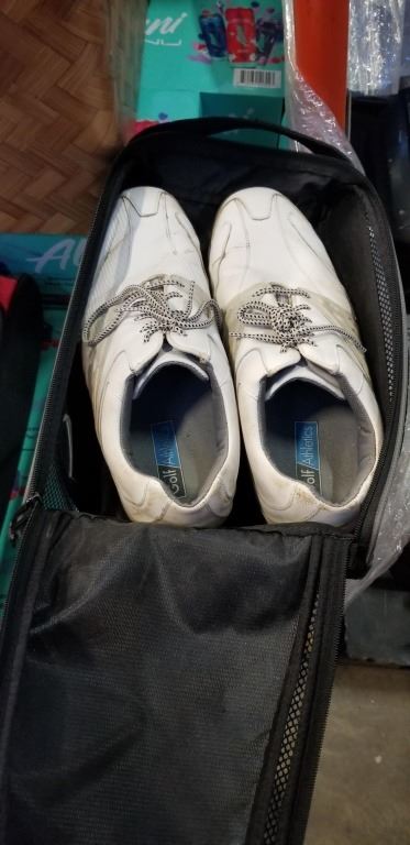 NIKE LUNAR GOLF SHOES SIZE 11, TAYLOR MADE AND NIKE SHOE BAGS AND TWO OTHER PAIRS OF GOLF SHOES