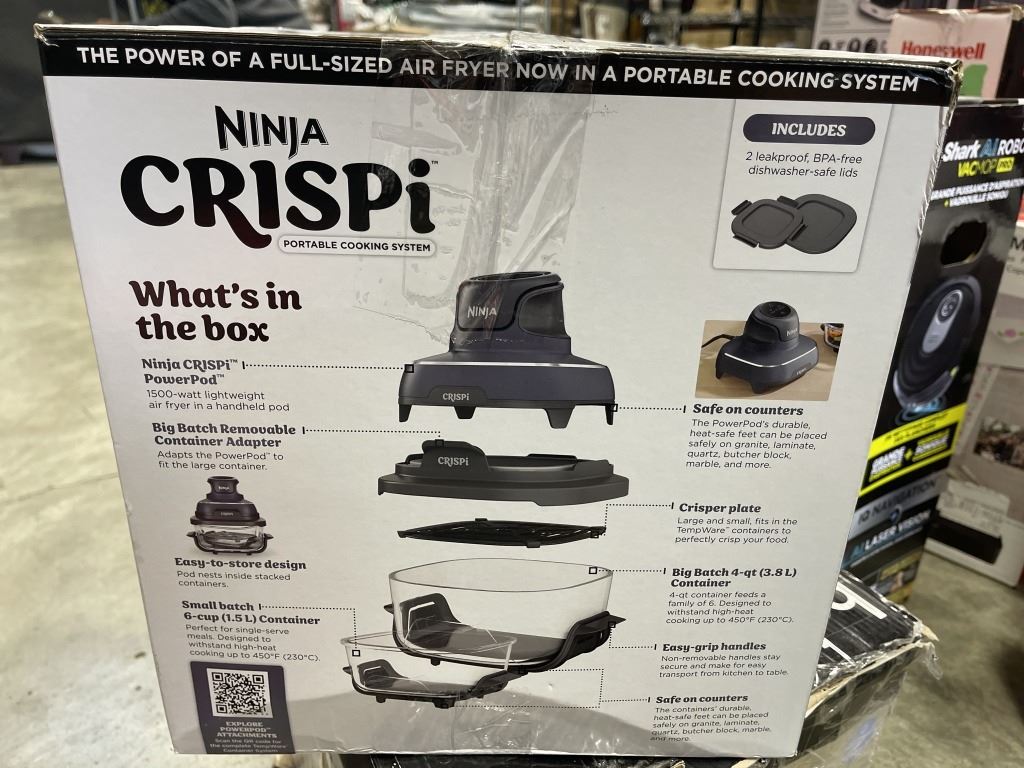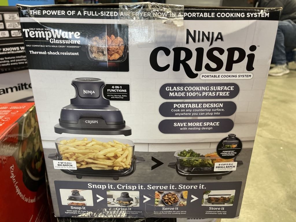 NINJA CRISPI 4IN1 PORTABLE GLASS AIR FRYER COOKING SYSTEM - TESTED WORKING, RETAIL $199