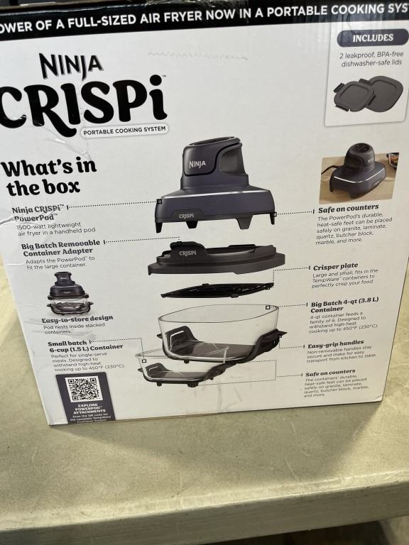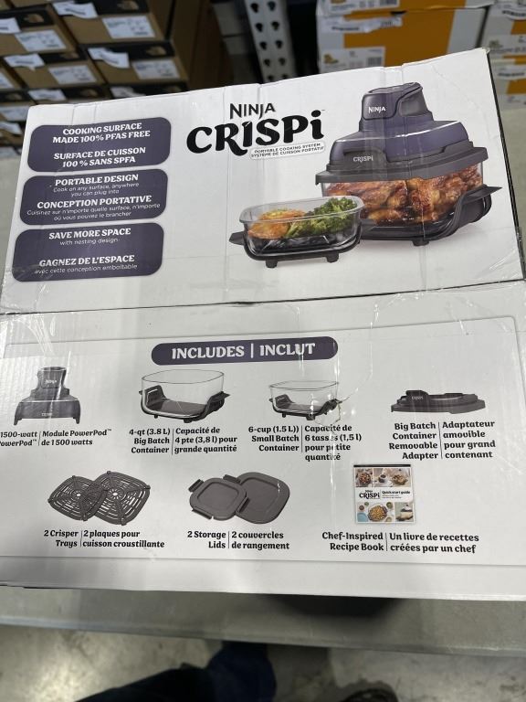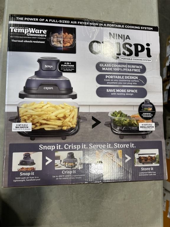 NINJA CRISPI 4IN1 PORTABLE GLASS AIR FRYER COOKING SYSTEM - TESTED WORKING, RETAIL $199