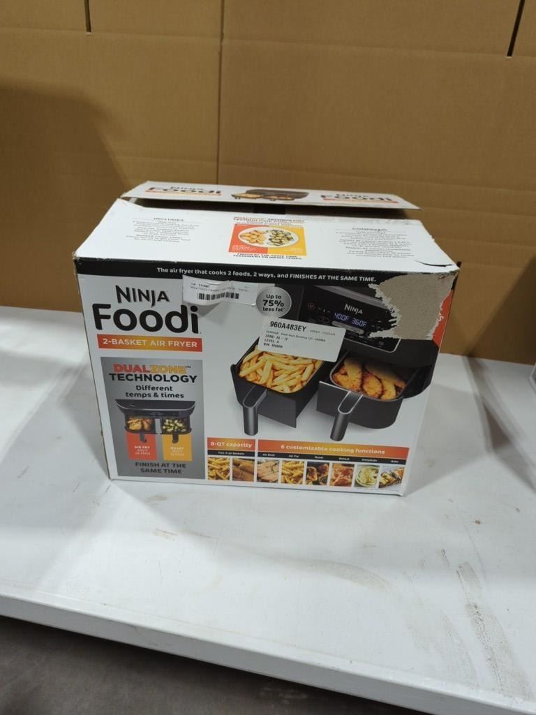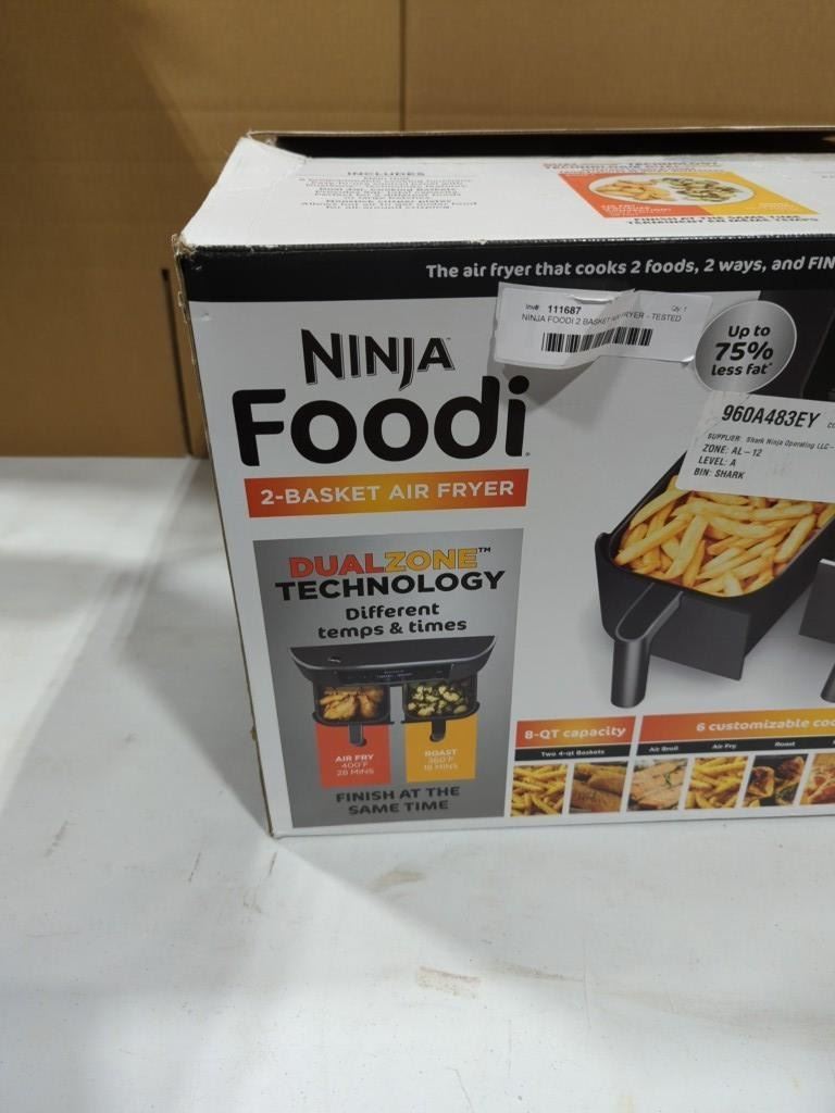 NINJA FOODI 2 BASKET AIR FRYER - TESTED WORKING, COSMETIC DAMAGE TO OUTER SHELL - RETAIL $189