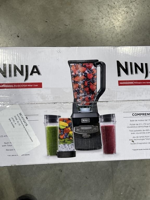 NINJA PROFESSIONAL 2.1L 1100W COUNTERTOP BLENDER W/ NINJA CUPS - TESTED WORKING, RETAIL $189