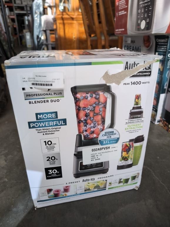 NINJA PROFESSIONAL PLUS BLENDER DUO AUTO-IQ 1400W COUNTERTOP BLENDER WITH NUTRI NINJA CUPS - TESTED WORKING