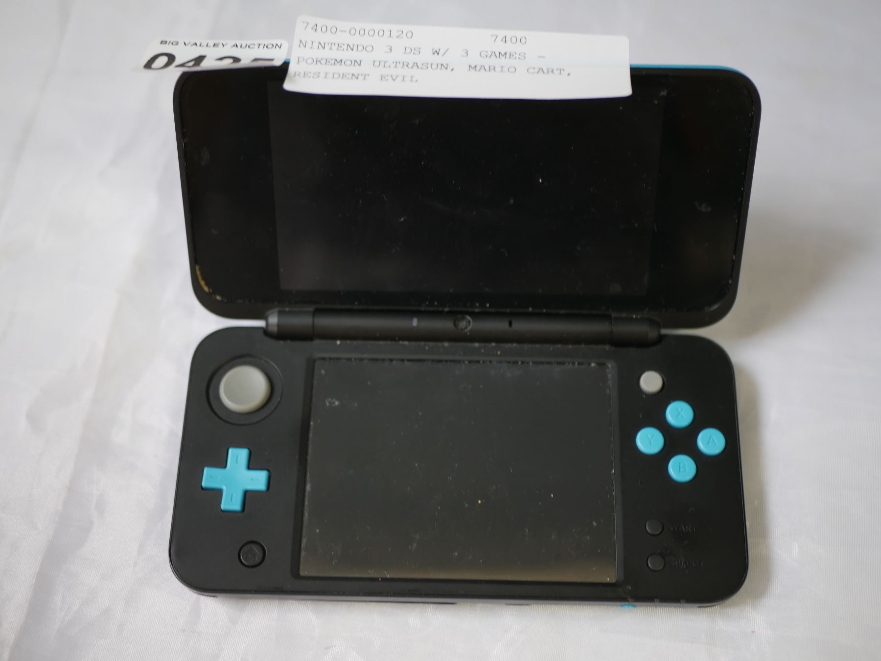 NINTENDO 3 DS W/ 3 GAMES - POKEMON ULTRASUN, MARIO CART, RESIDENT EVIL