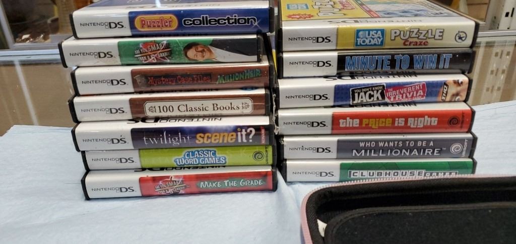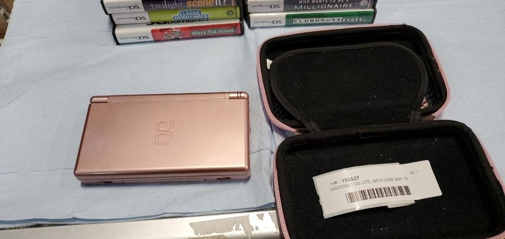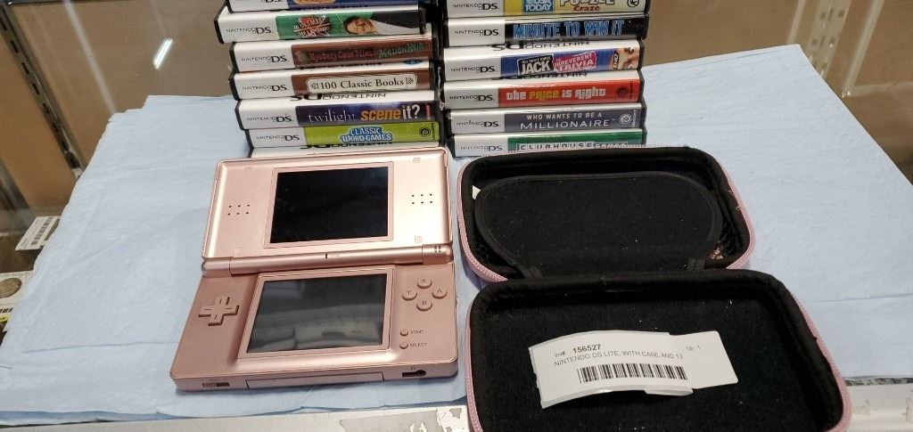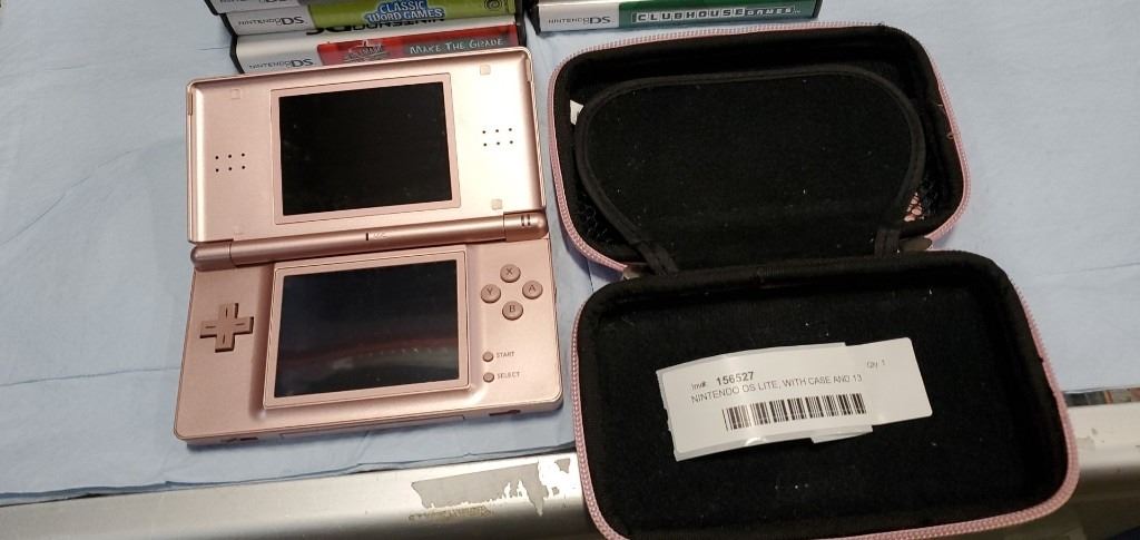 NINTENDO DS LITE, WITH CASE AND 13 CASED GAMES, NO CHARGER