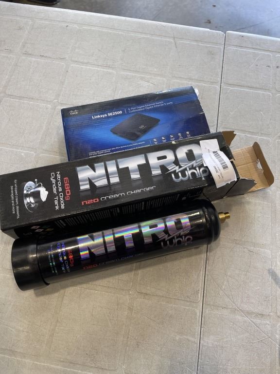 NITRO WHIP N20 CREAM CHARGER TANK, AND LINKSYS ETHERNET SWITCH