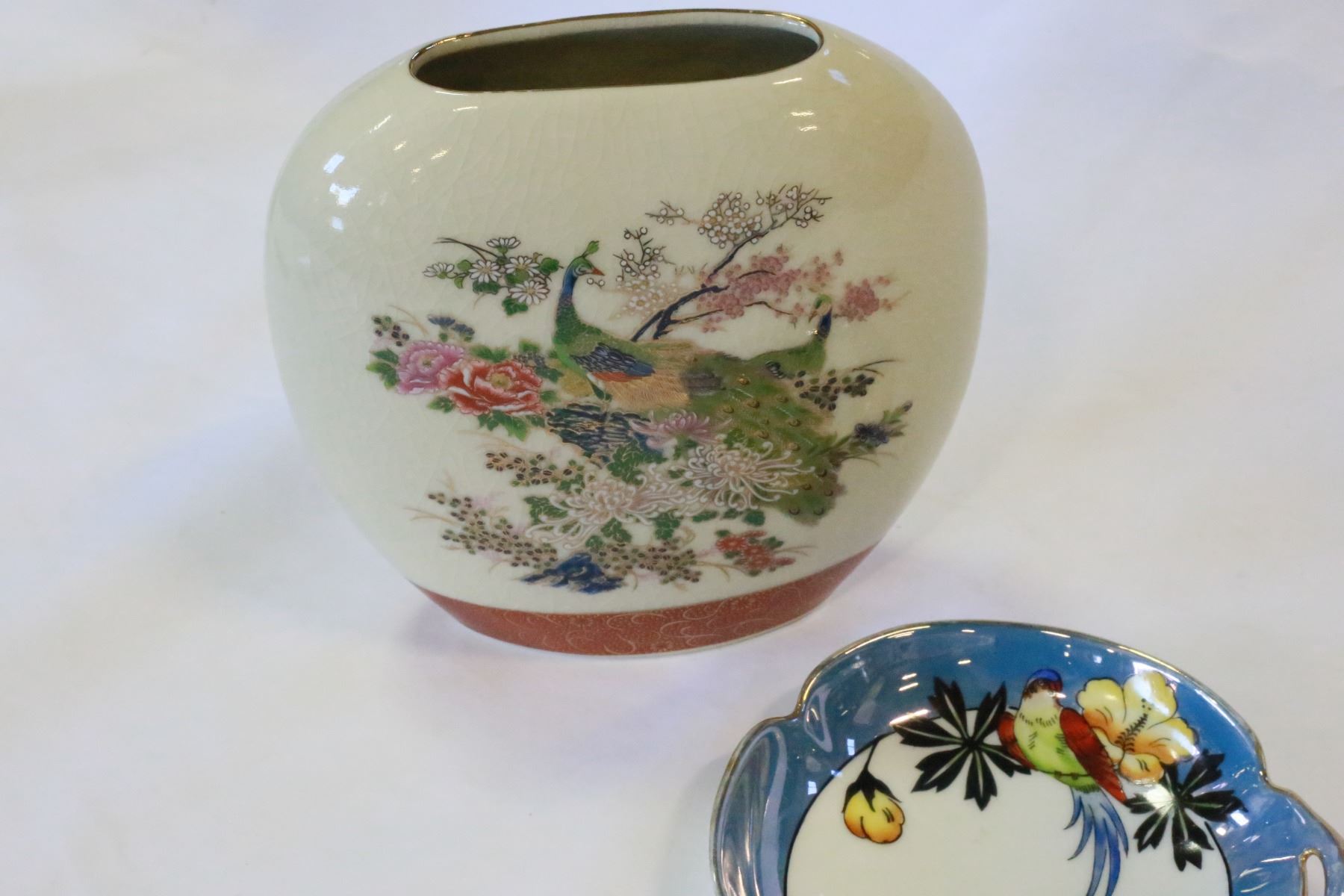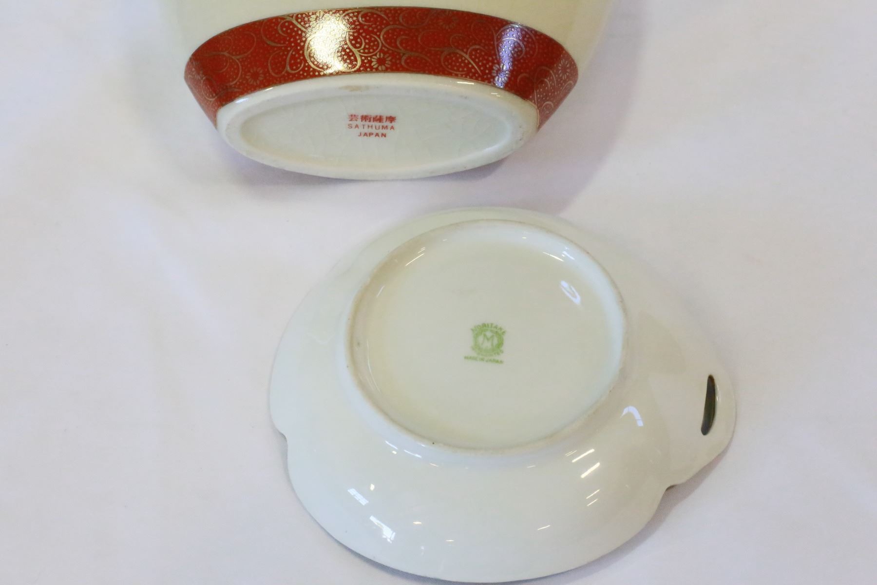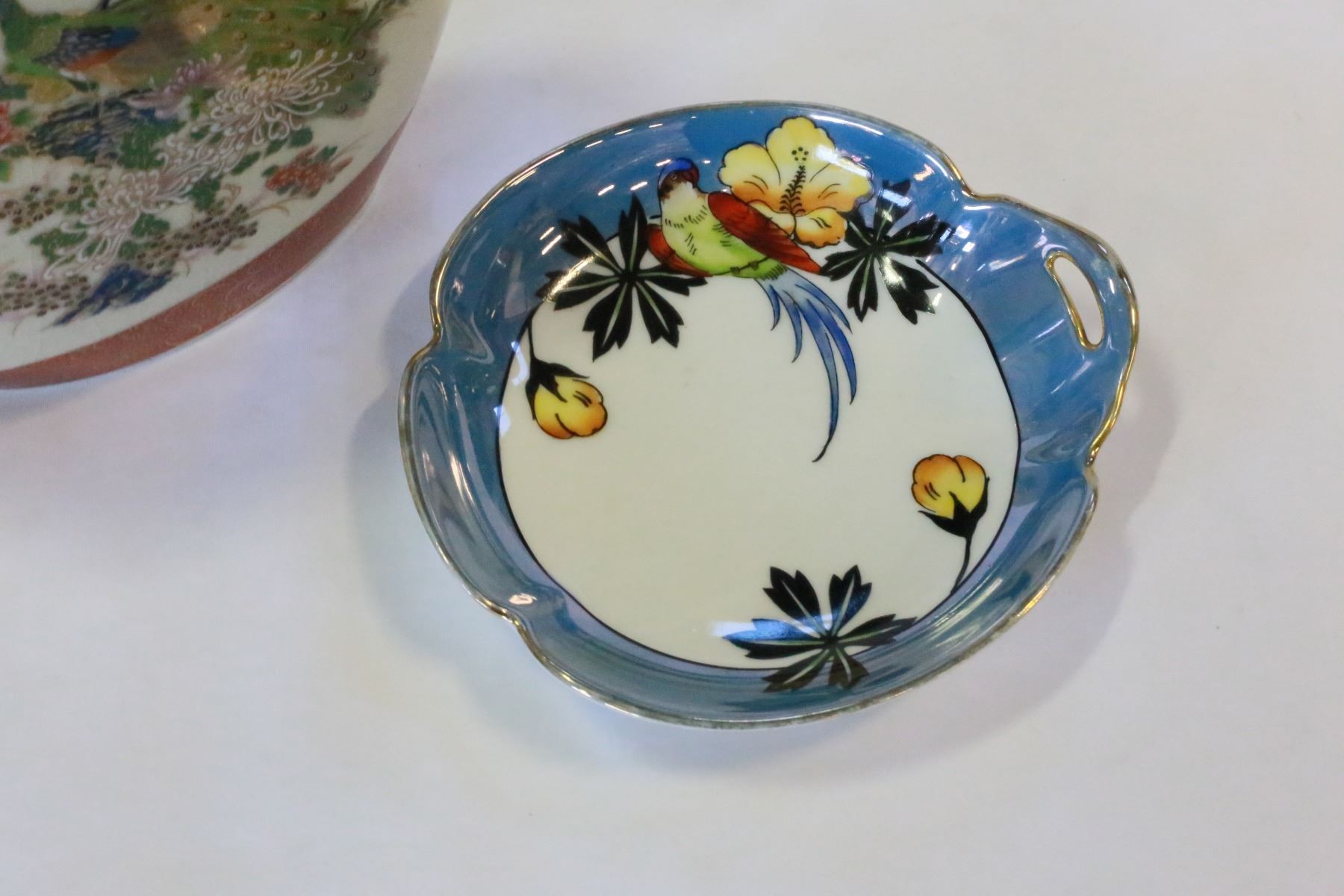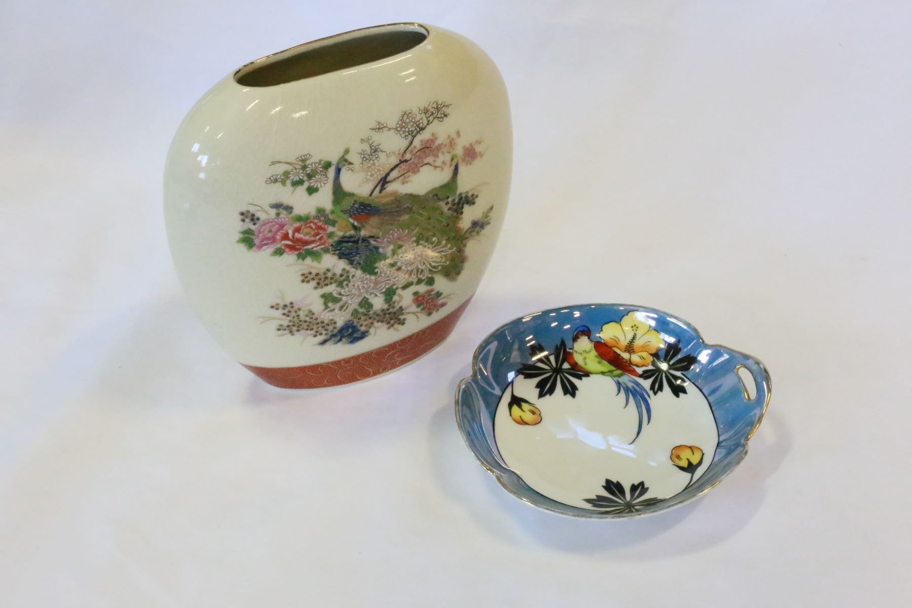 NORITAKI MORIMURA LUSTRE DISH AND SATSUMA OVAL VASE