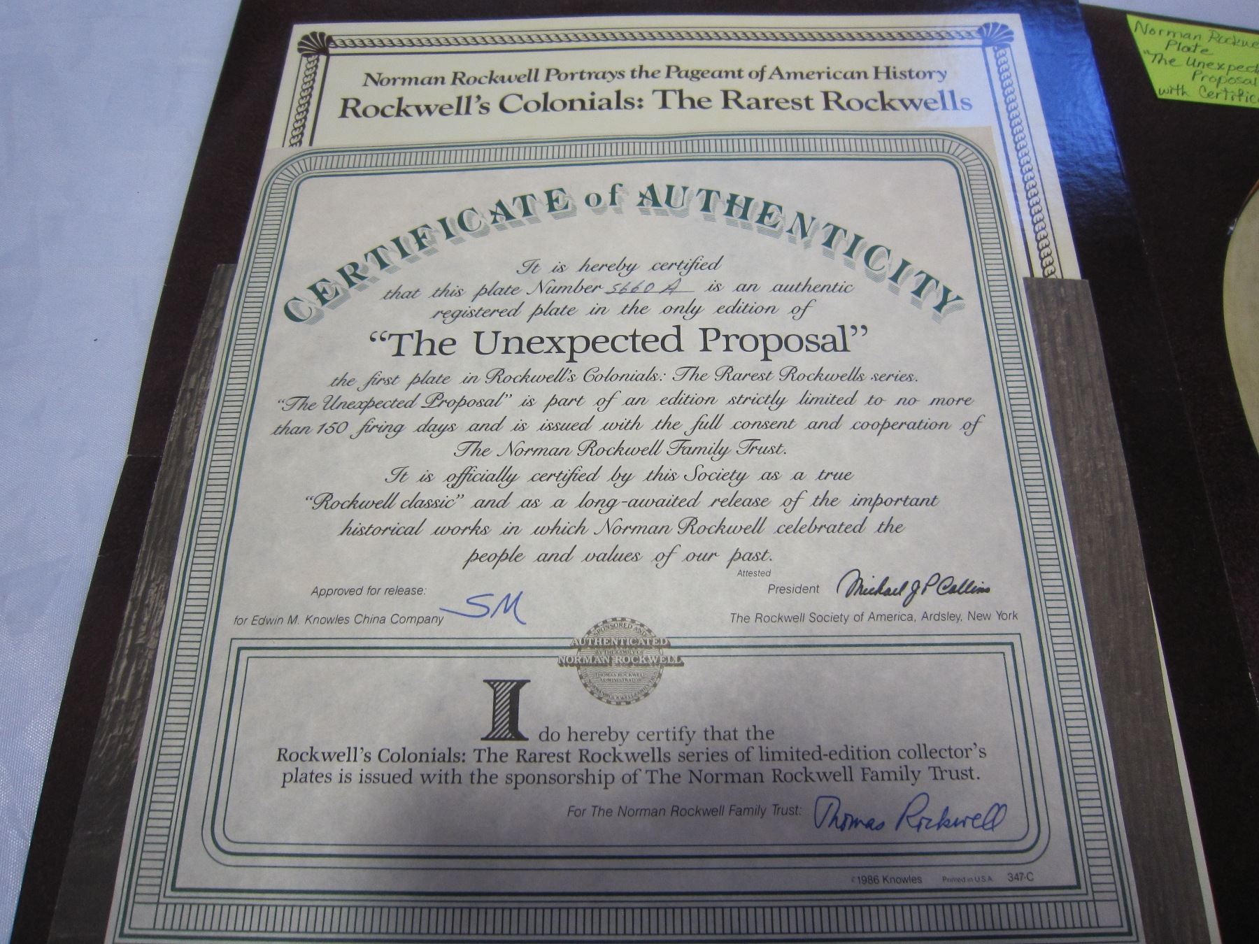 NORMAN ROCKWELL PLATE THE UNEXPECTED PROPOSAL WITH COA