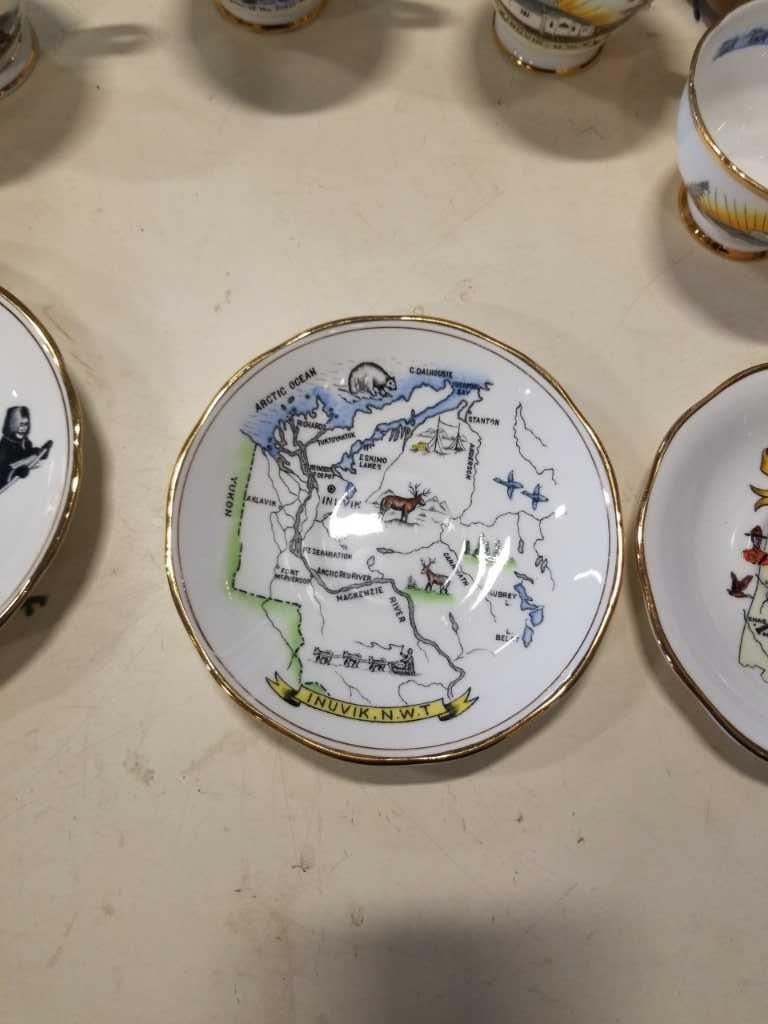 NORTHERN CANADIAN SOUVENIR TEA ITEMS - YUKON CUP AND SAUCER, INUVIK NORTH WEST TERRITORIES 2 CUPS AN