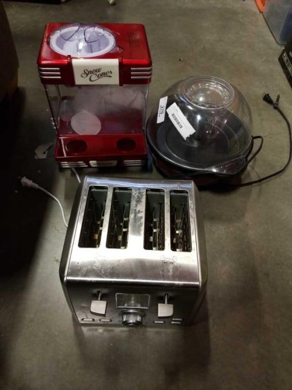 NOSTALGIA SNOWCONE MAKER, POPFLIX POPCORN MAKER AND CUISINART STAINLESS TOASTER