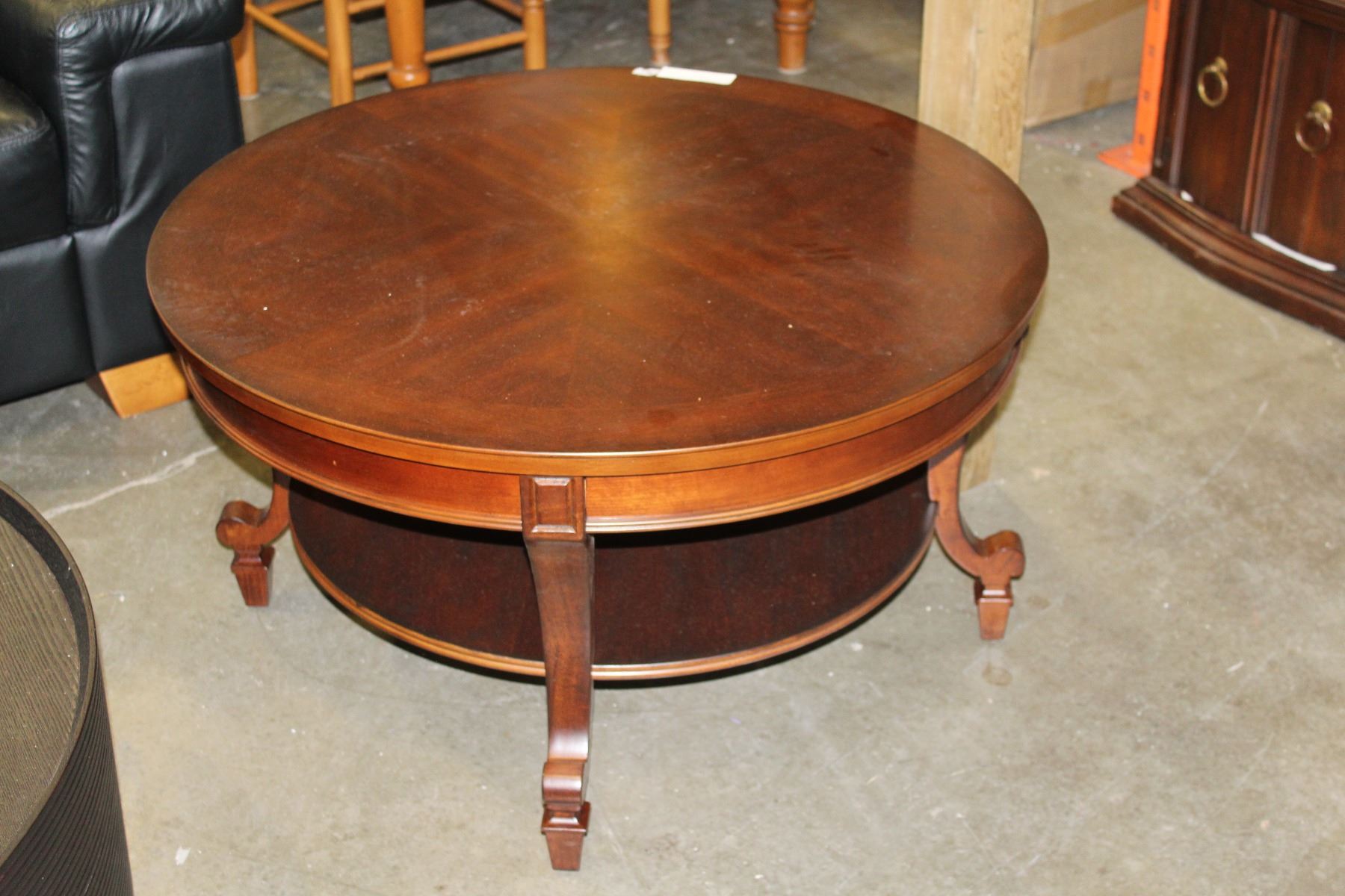 NW ROUND MODERN TWO TIER SOLID WOOD COFFEE TABLE
