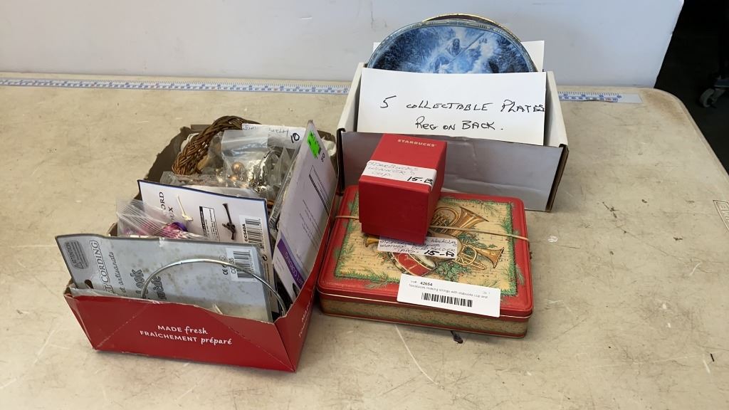 Necklaces making strings with watches, starbucks cup and collector plates