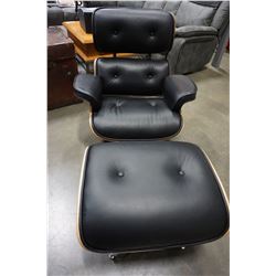 EAMES STYLE BLACK LEATHER SWIVEL CHAIR AND OTTOMAN