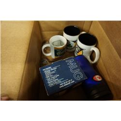 LOT OF NEW LICENSED NHL AND NBA MUGS, SHOTGLASSES, TRAVEL MUG, RETAIL $175