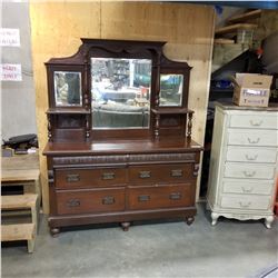2 PC ANTIQUE 6 DRAWER BUFFET AND MIRRORED HUTCH