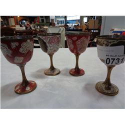 4 HAND PAINTED BRASS GOBLETS731 - 4 HAND PAINTED BRASS GOBLETS