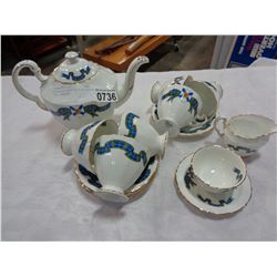 CARDLTON WARE TEA SET - 6 CUPS AND SAUCERS, SUGAR, AND TEAPOT W/ NO LID