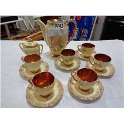 CARDLTON WARE TEA SET - 6 CUPS AND SAUCERS, SUGAR, AND TEAPOT W/ NO LID743 - CARDLTON WARE TEA SET - 6 CUPS AND SAUCERS, SUGAR, AND TEAPOT W/ NO LID
