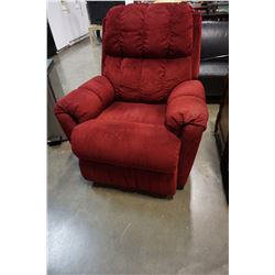RED UPHOLSTERED RECLINGING ARM CHAIR