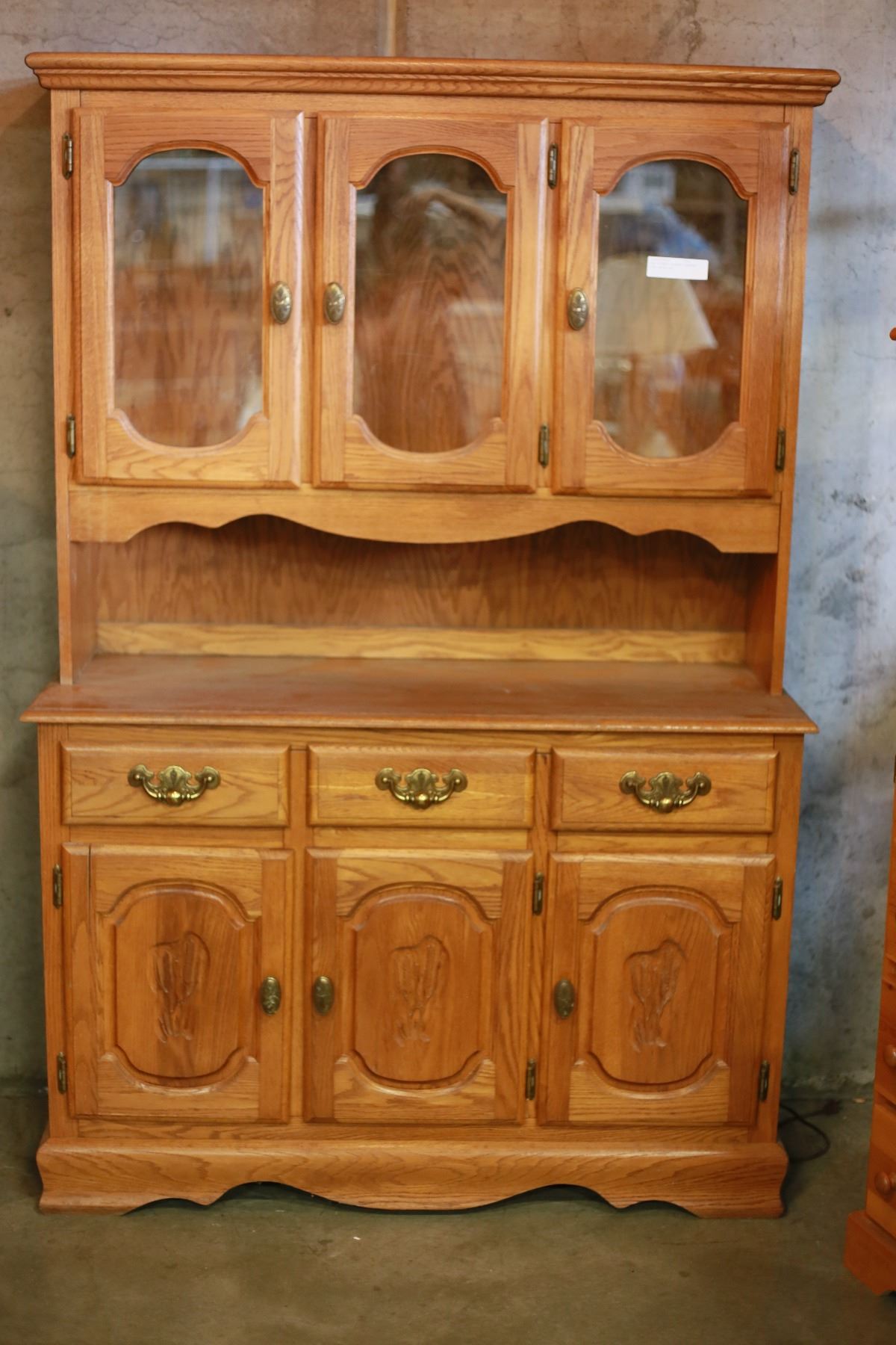 OAK 2-PIECE DISPLAY CABINET WITH HUTCH TOP