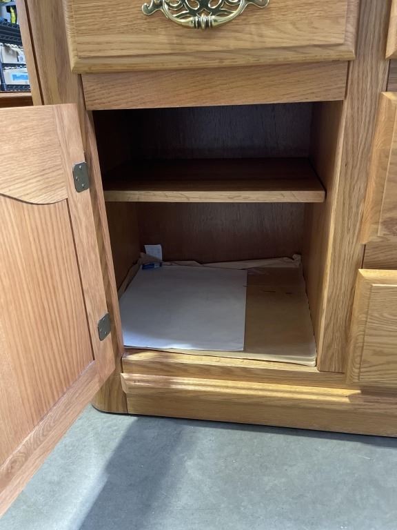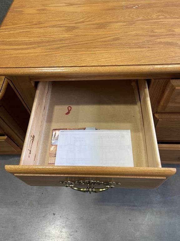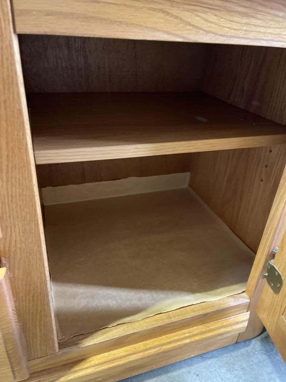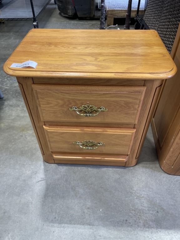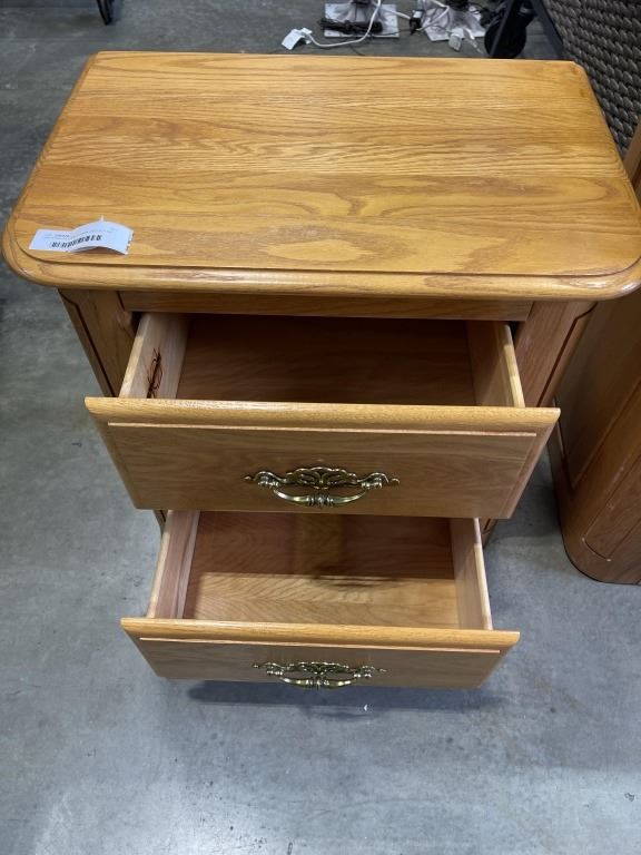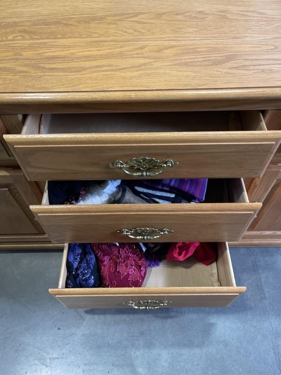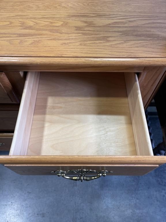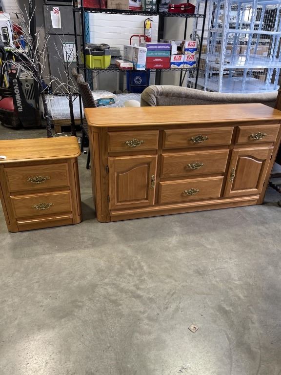 OAK 5 DRAWER AND 2 DOOR DRESSER W/ MATCHING NIGHT STAND