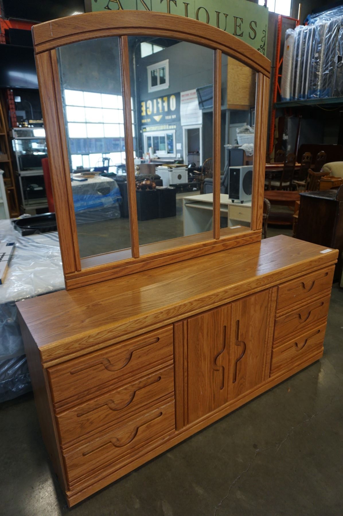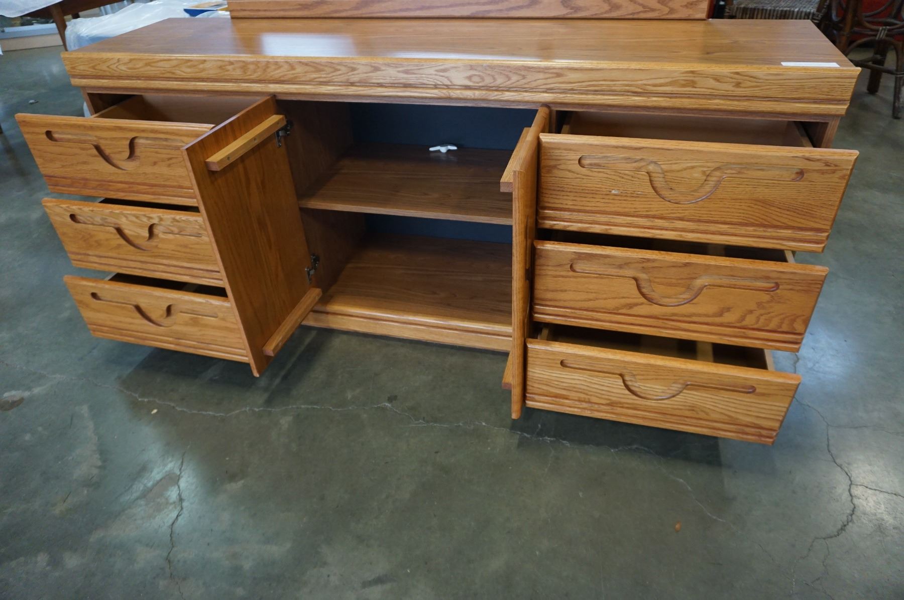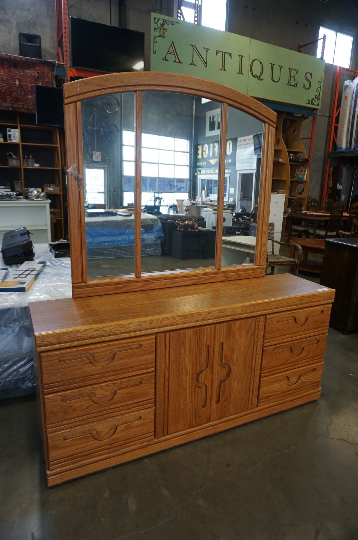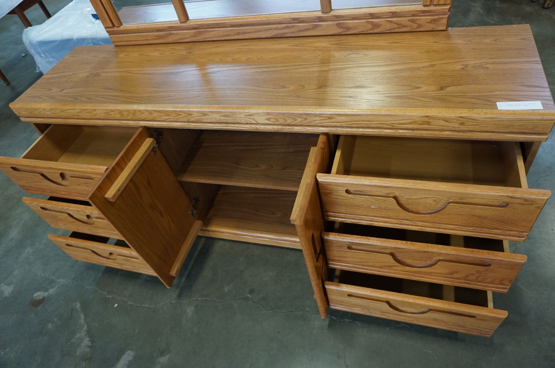 OAK 6 DRAWER DRESSER W/ MIRROW AND 2 DRAWER NIGHT STAND