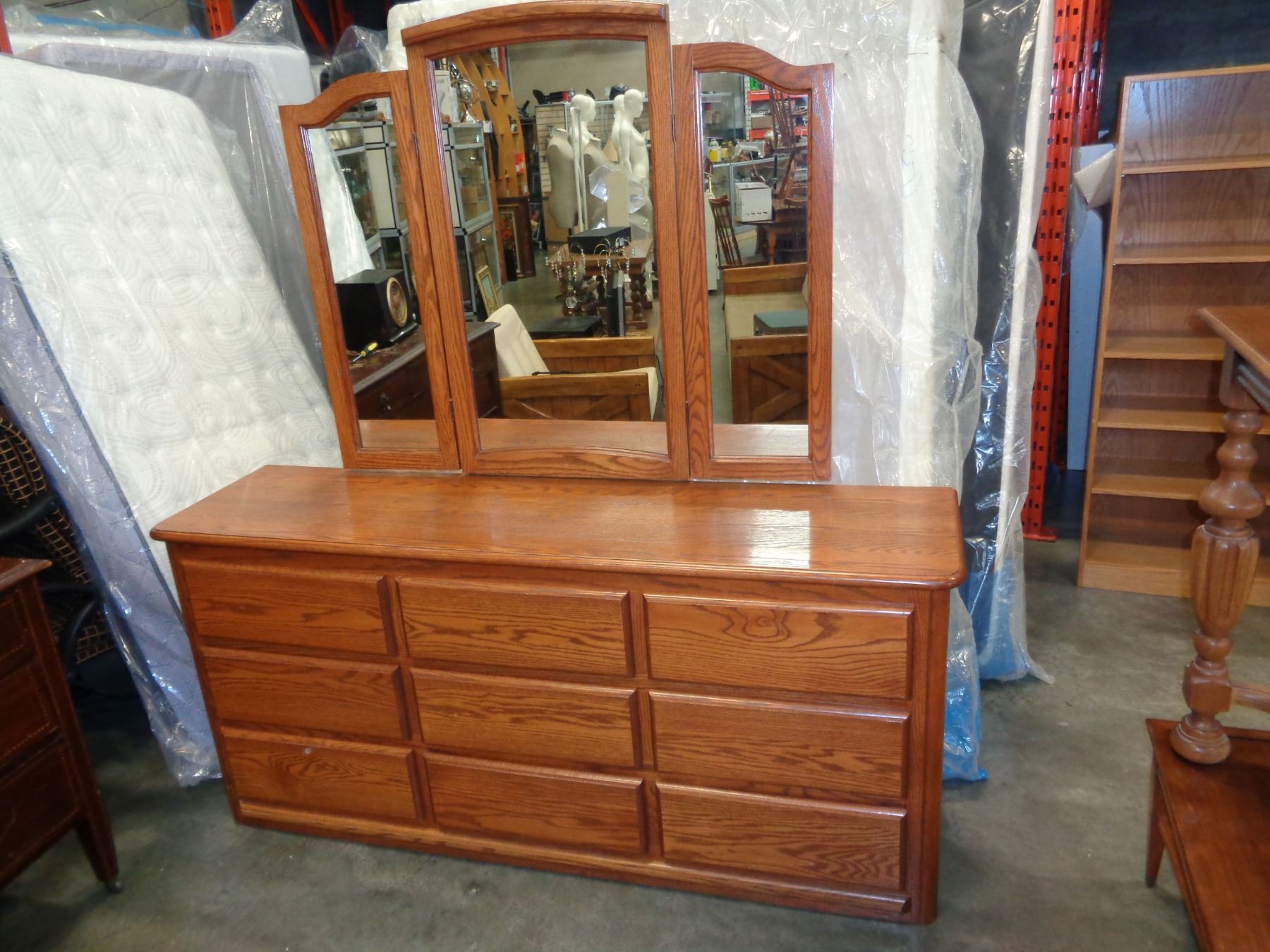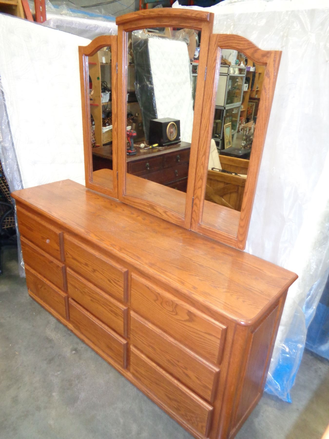 OAK 9 DRAWER DRESSER W/ MIRROR