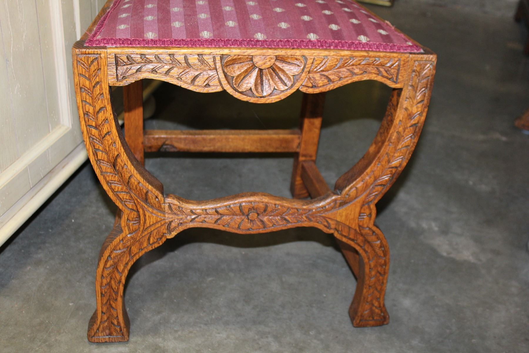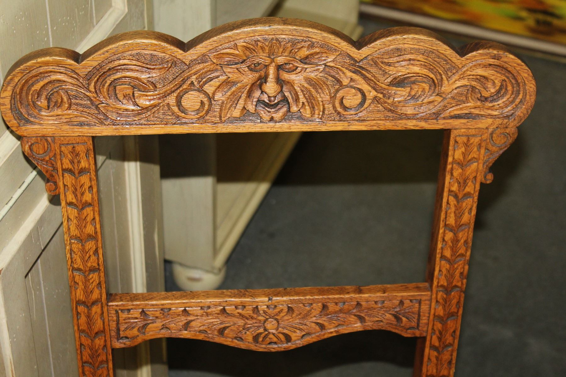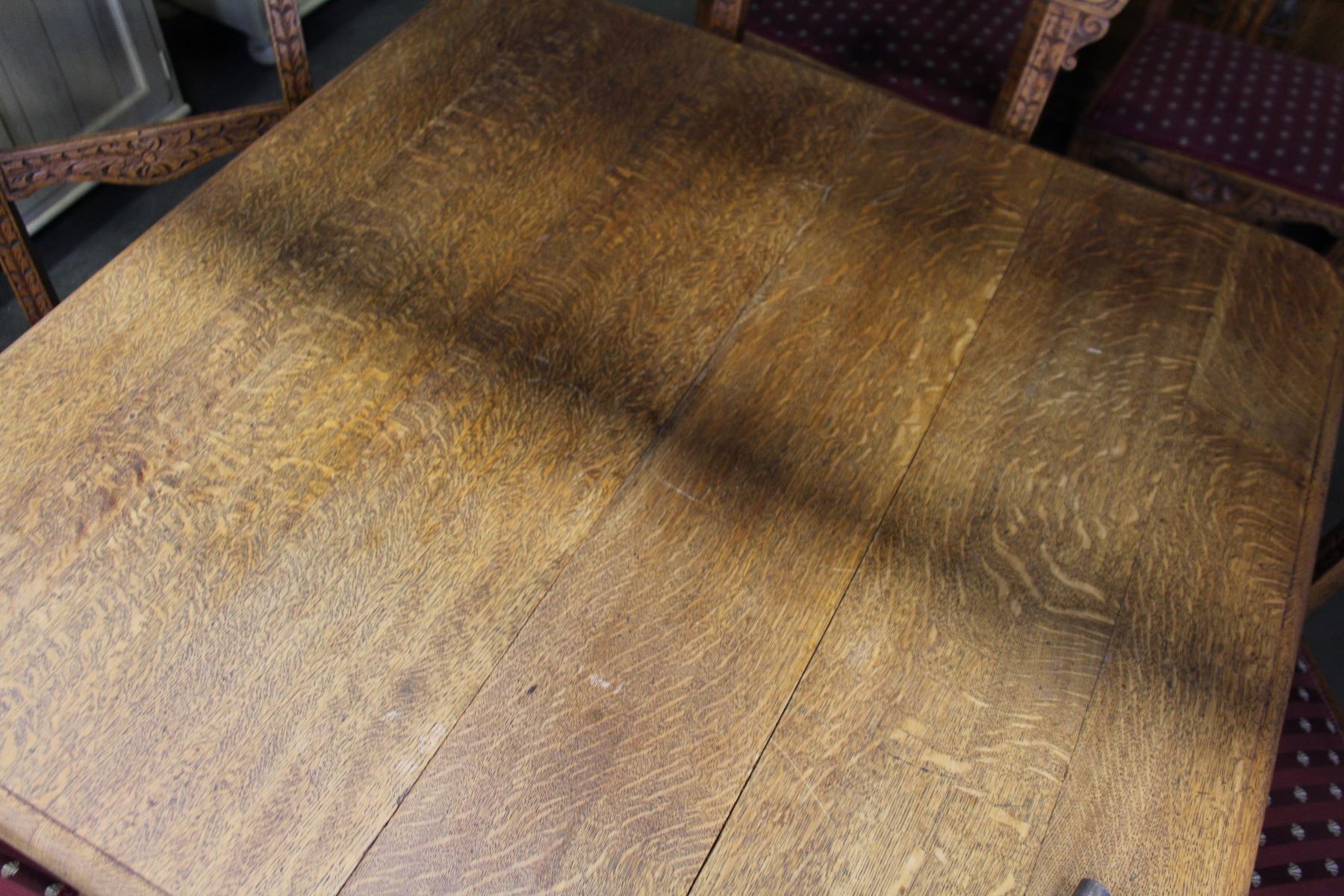 OAK CRANK DINING TABLE W/ CARVED LEGS AND 6 CHAIRS