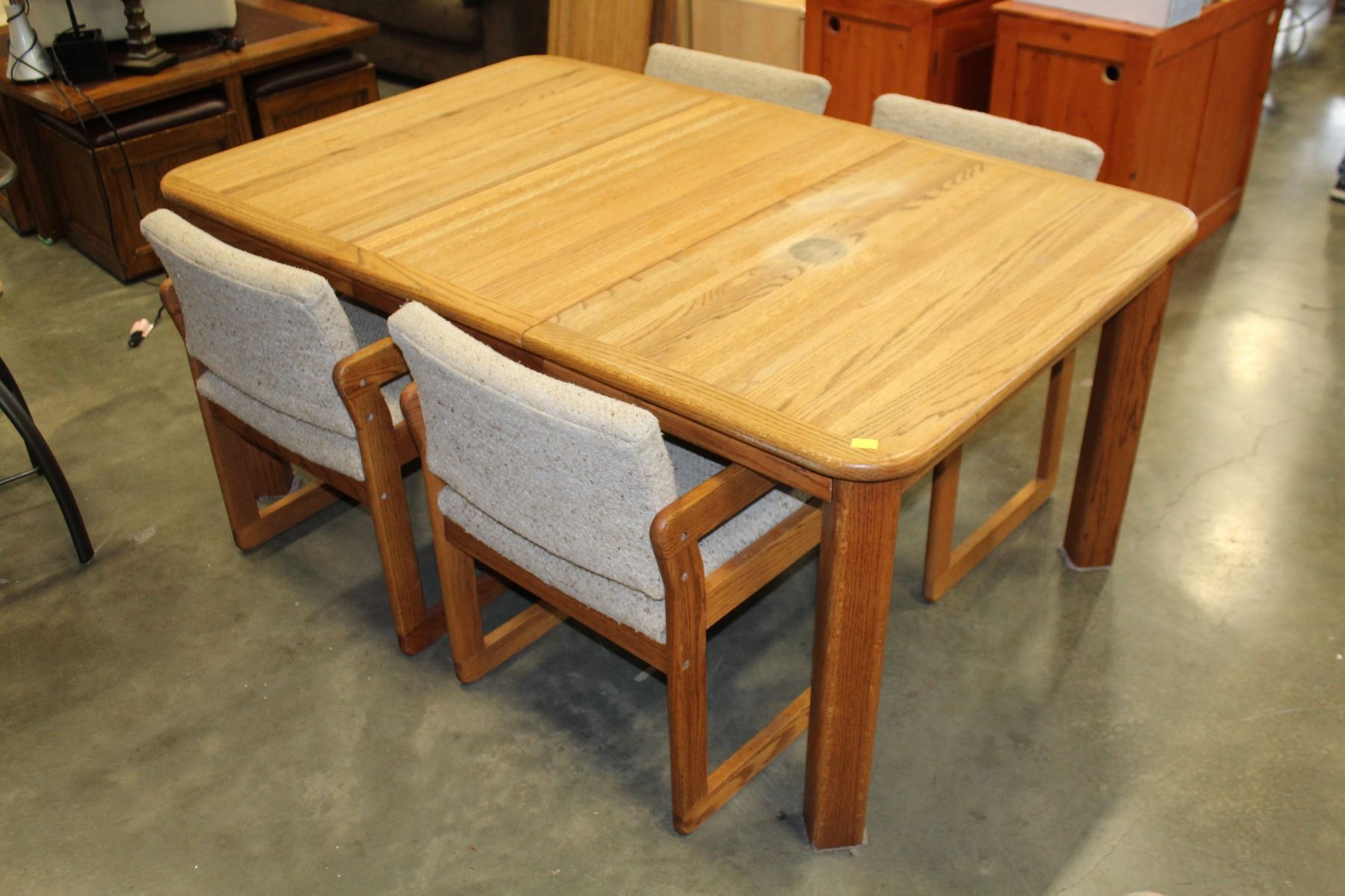 OAK DINING TABLE W/ 3 LEAFS AND 6 CHAIRS
