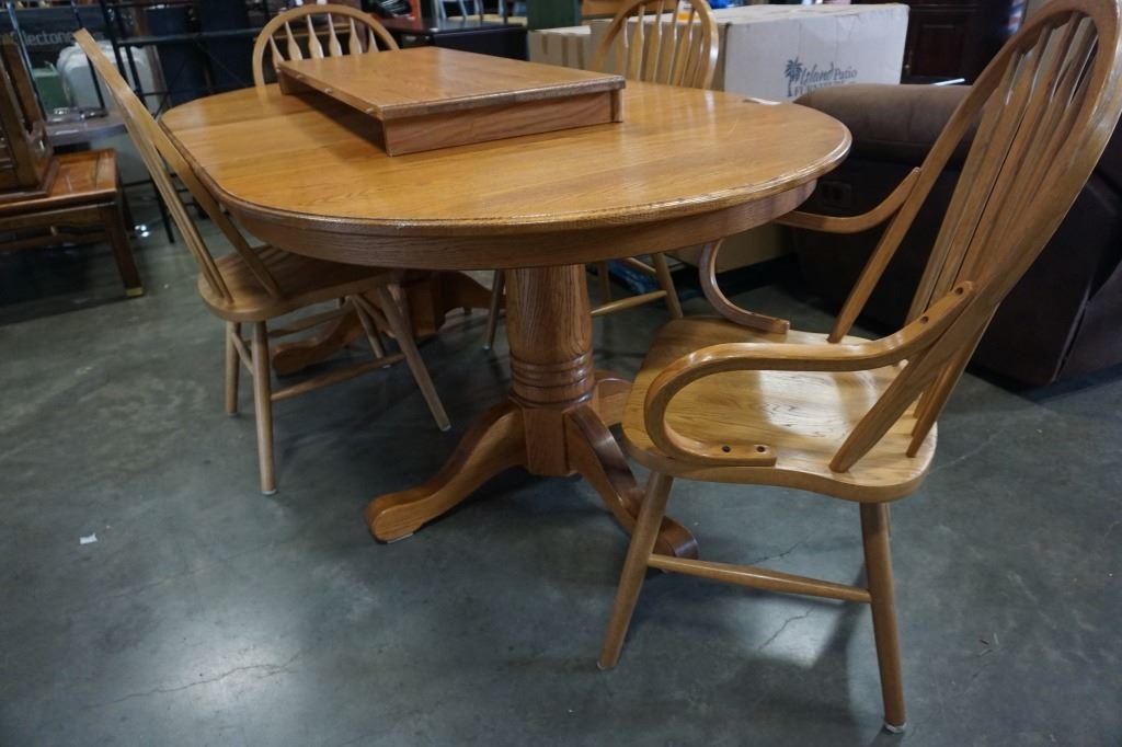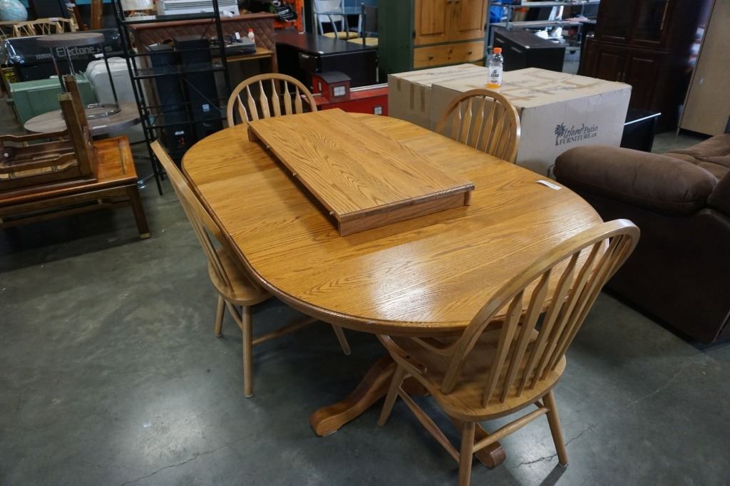 OAK DINING TABLE WITH 2 LEAFS AND 4 CHAIRS