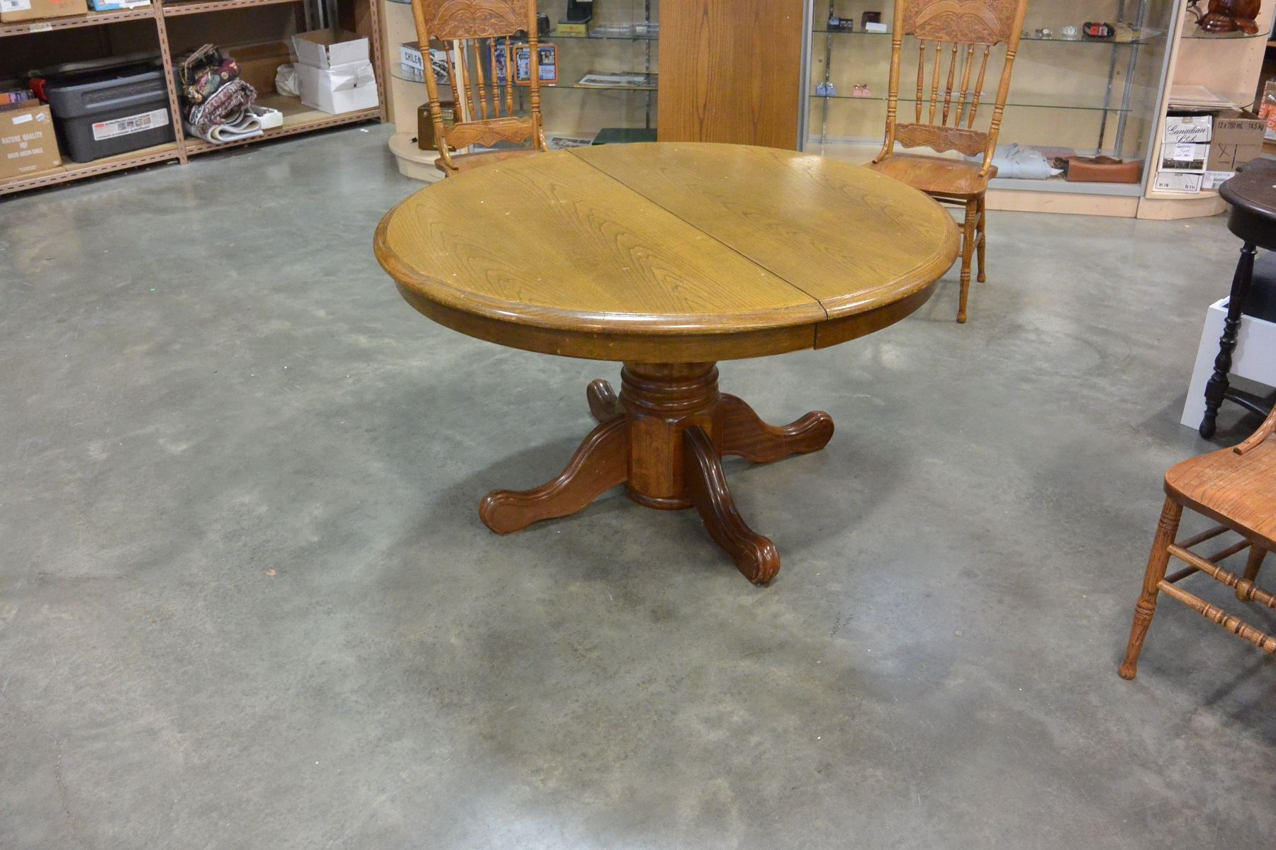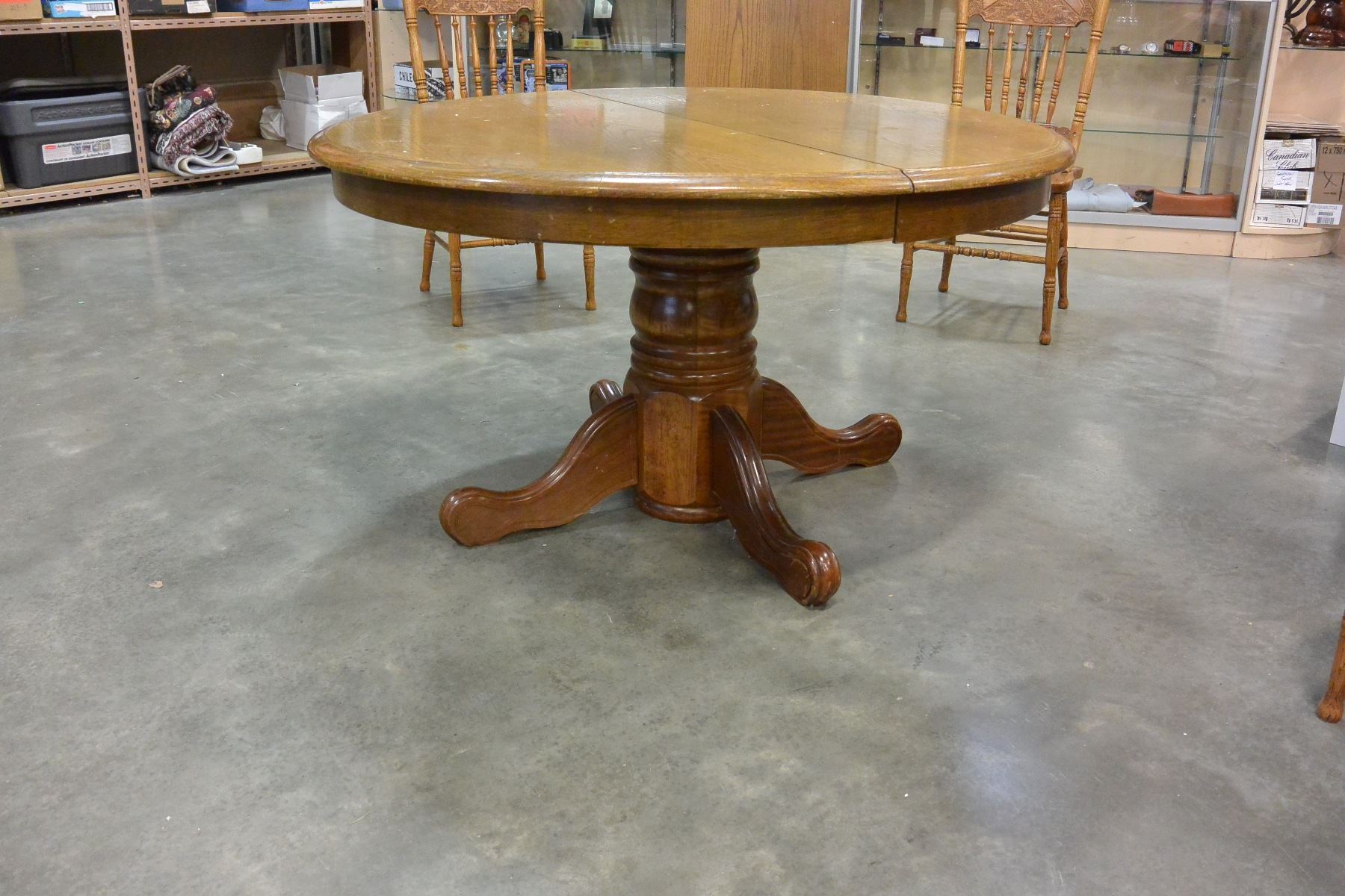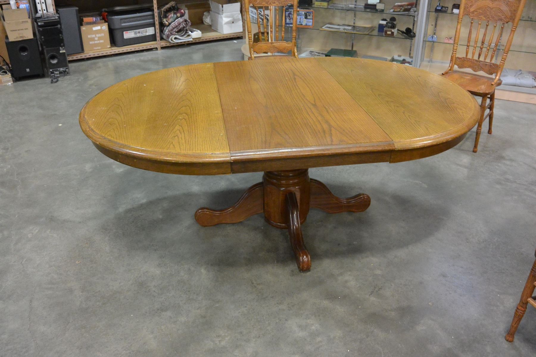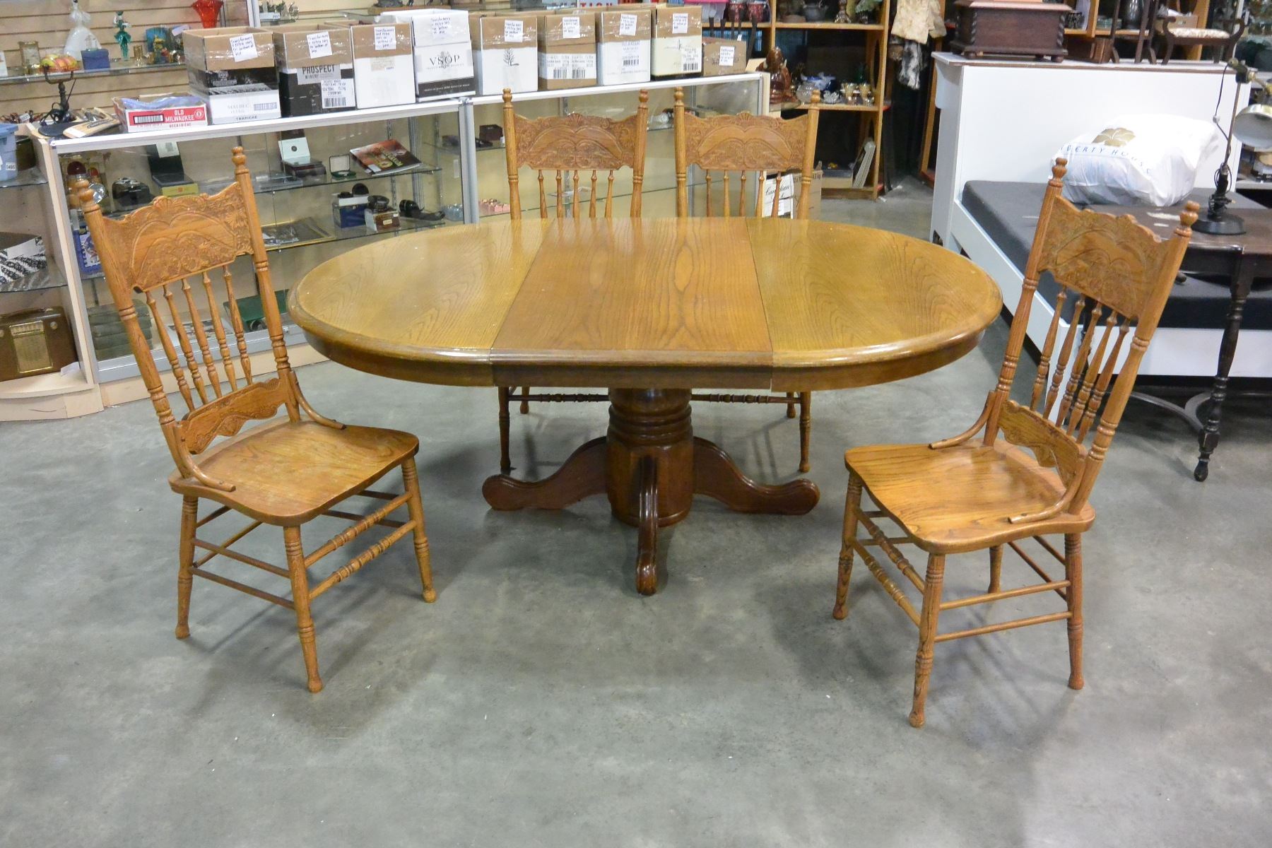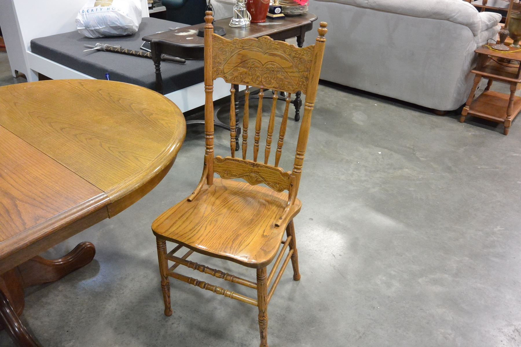 OAK DINING TABLE WITH 4 PRESSBACK CHAIRS