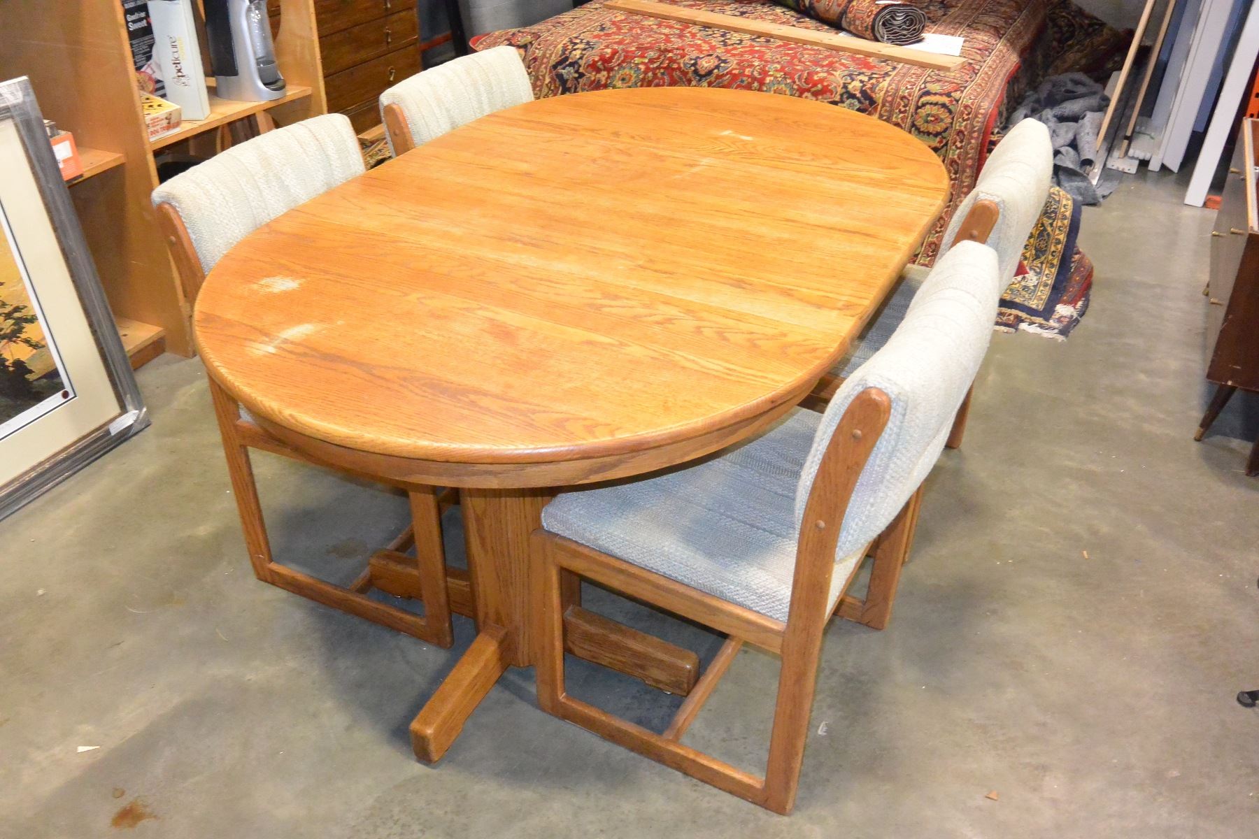OAK DINING TABLE WITH LEAF AND FOUR CHAIRS