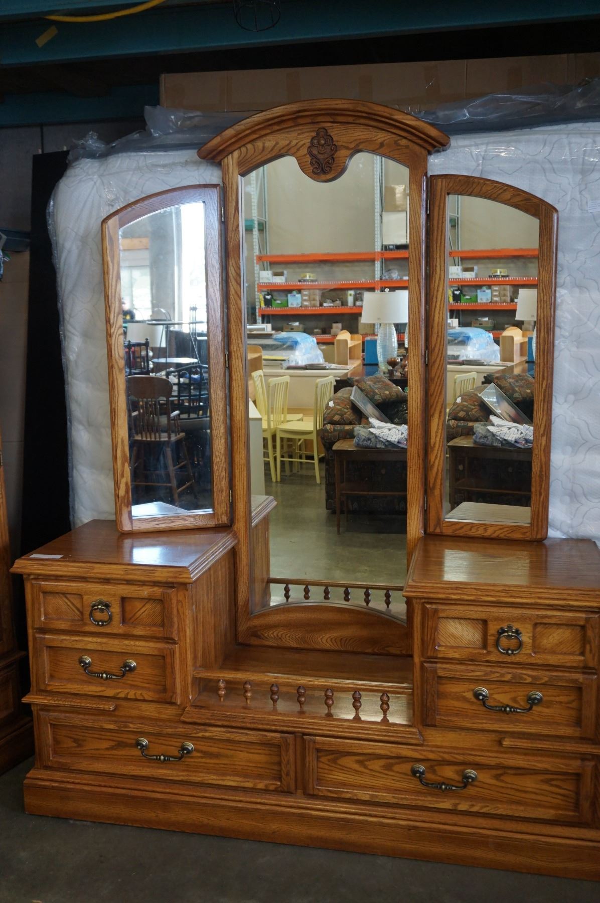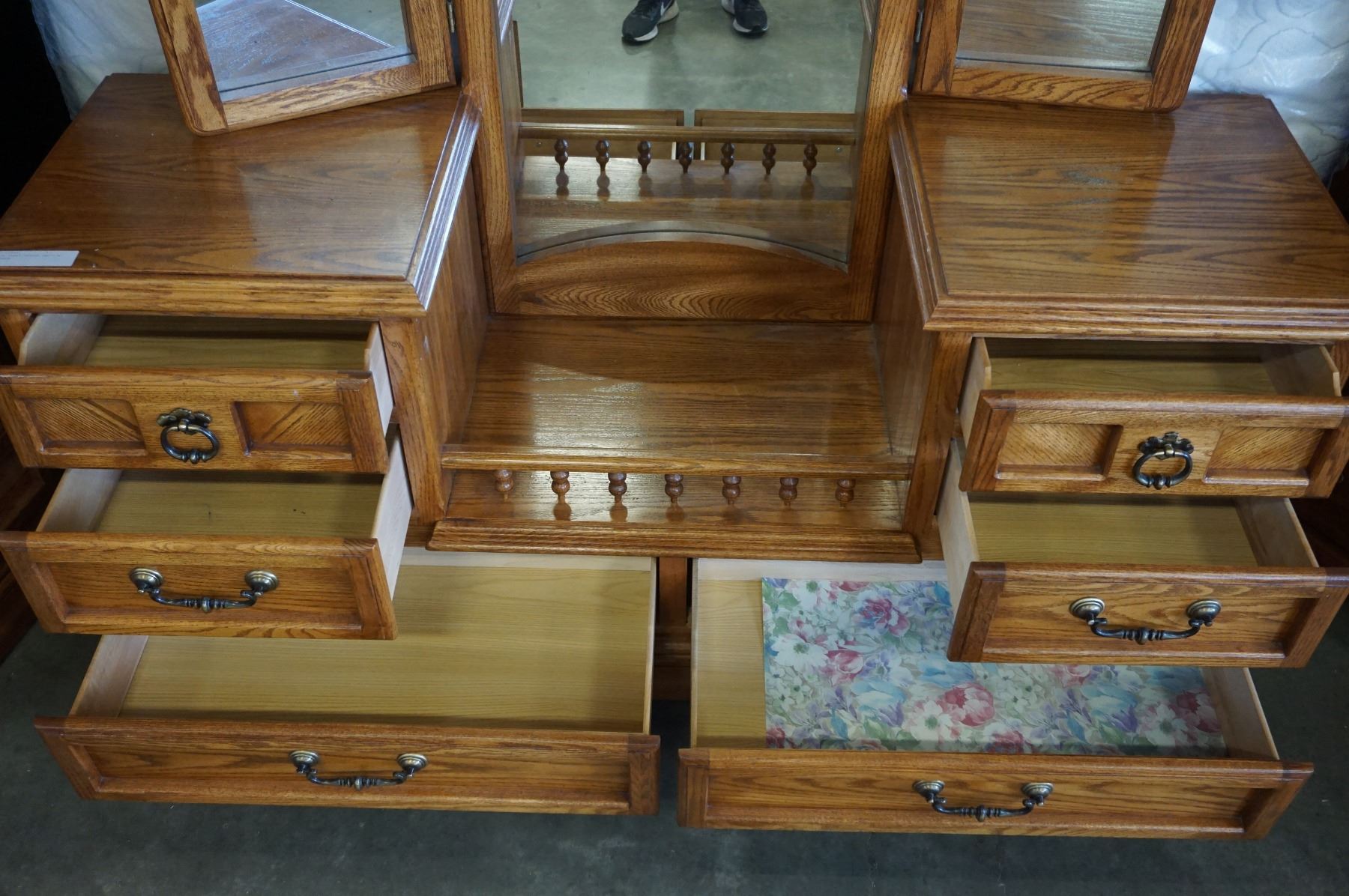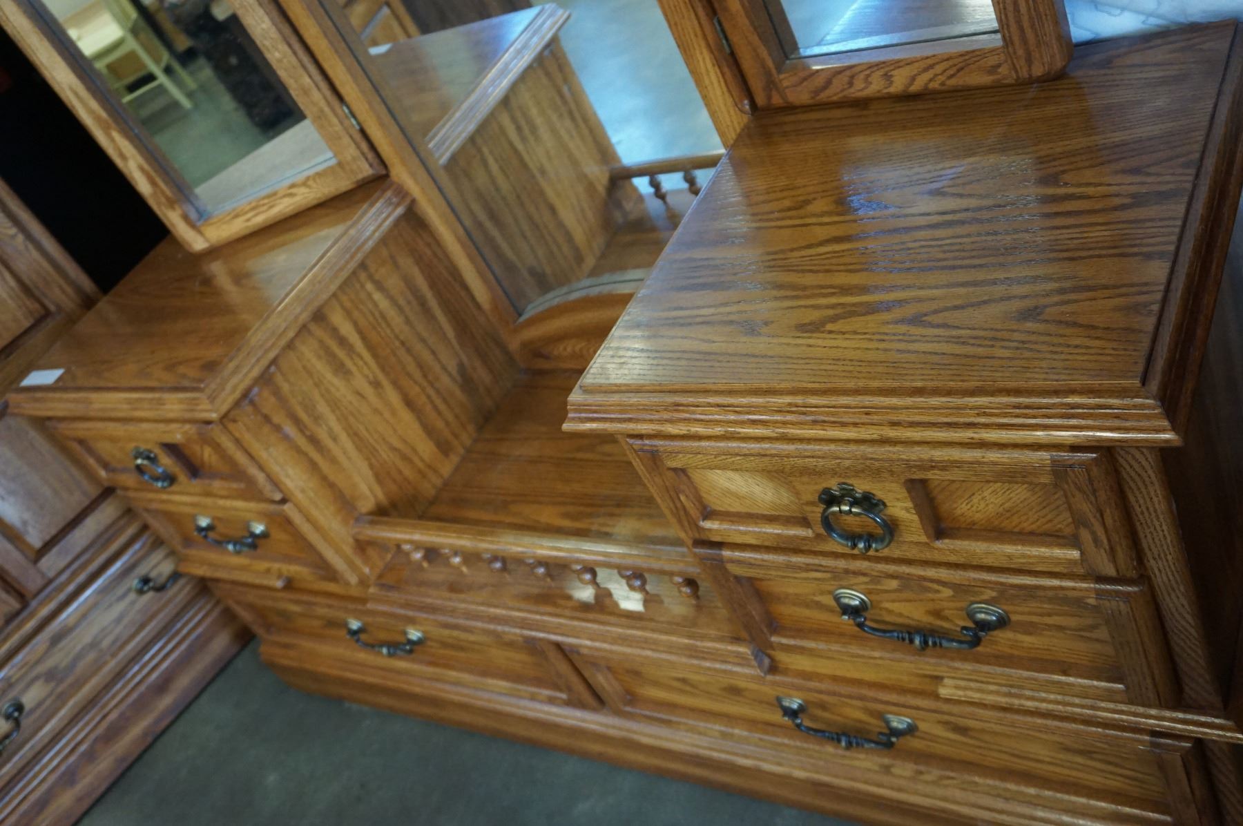 OAK DOUBLE DRESSER VANITY W/ MIRROR