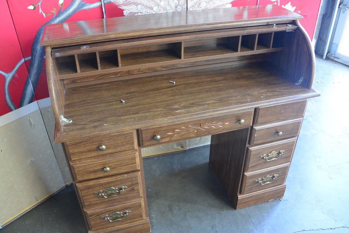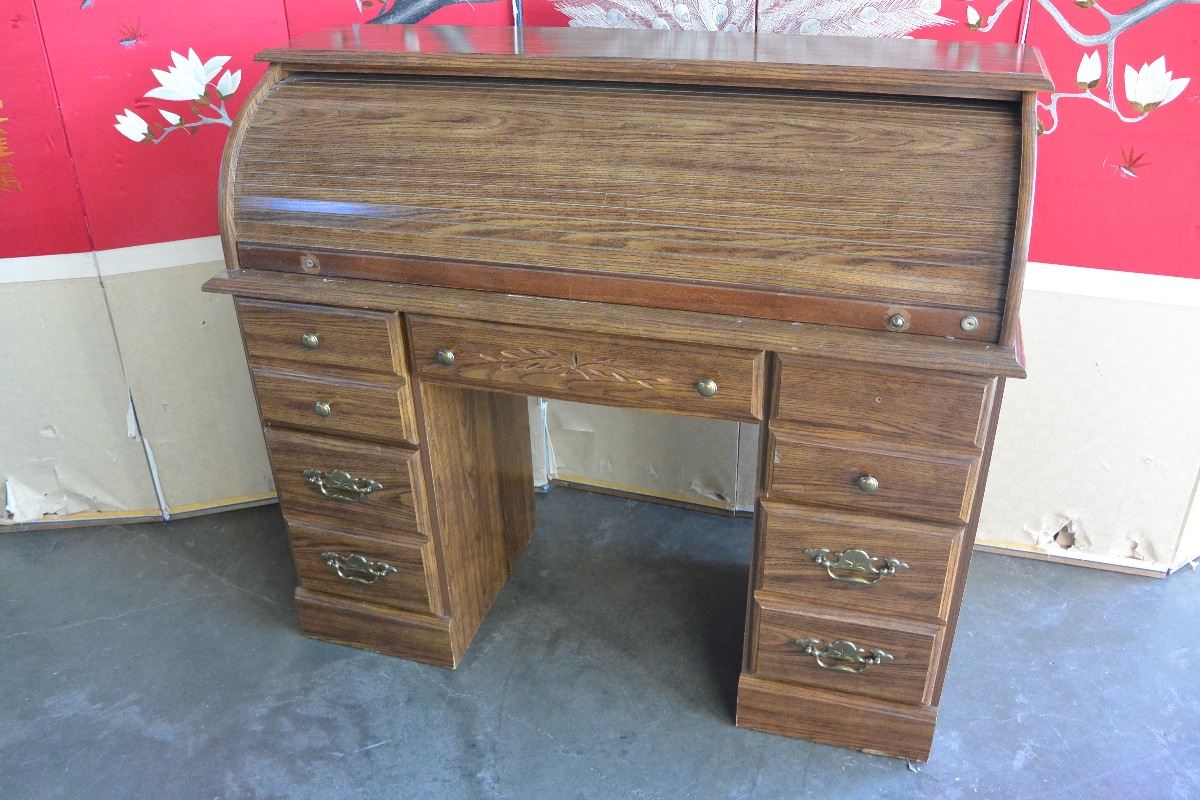 OAK DOUBLE PEDESTLE ROLL TOP DESK