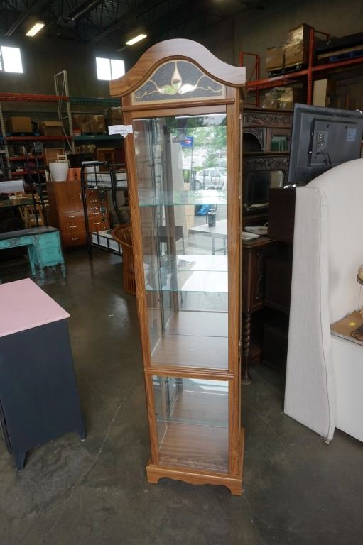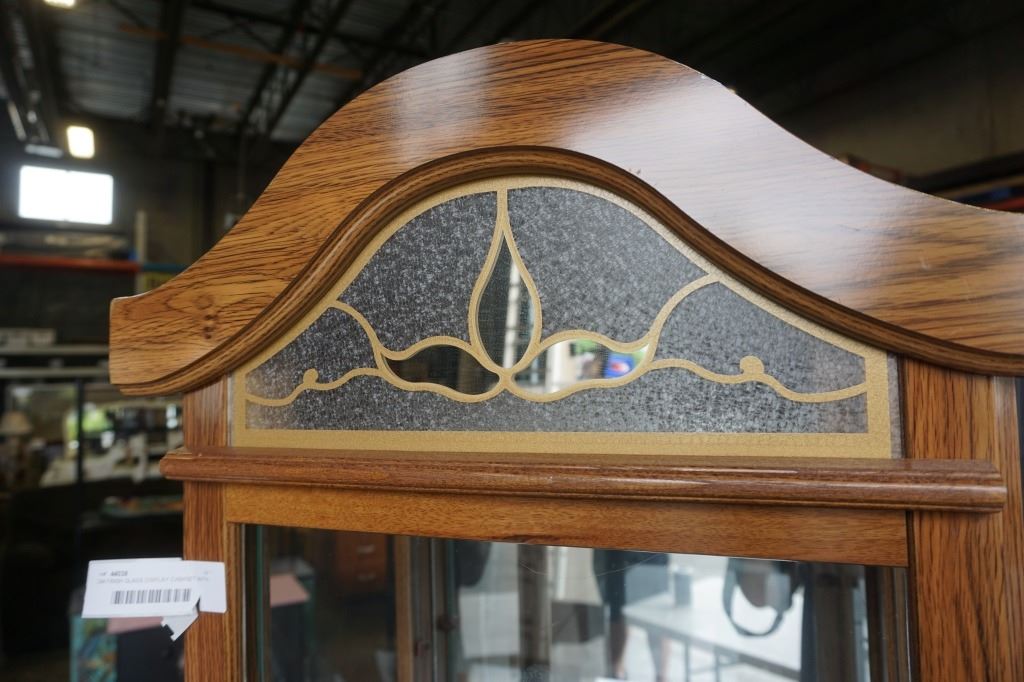 OAK FINISH GLASS DISPLAY CABINET WITH SIDE DOORS