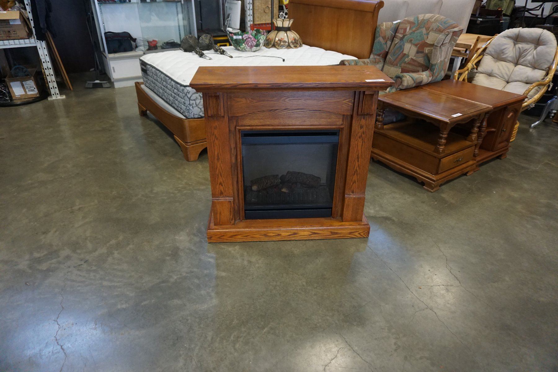 OAK FIREPLACE MANTLE WITH DIMPLEX ELECTRIC FIREPLACE