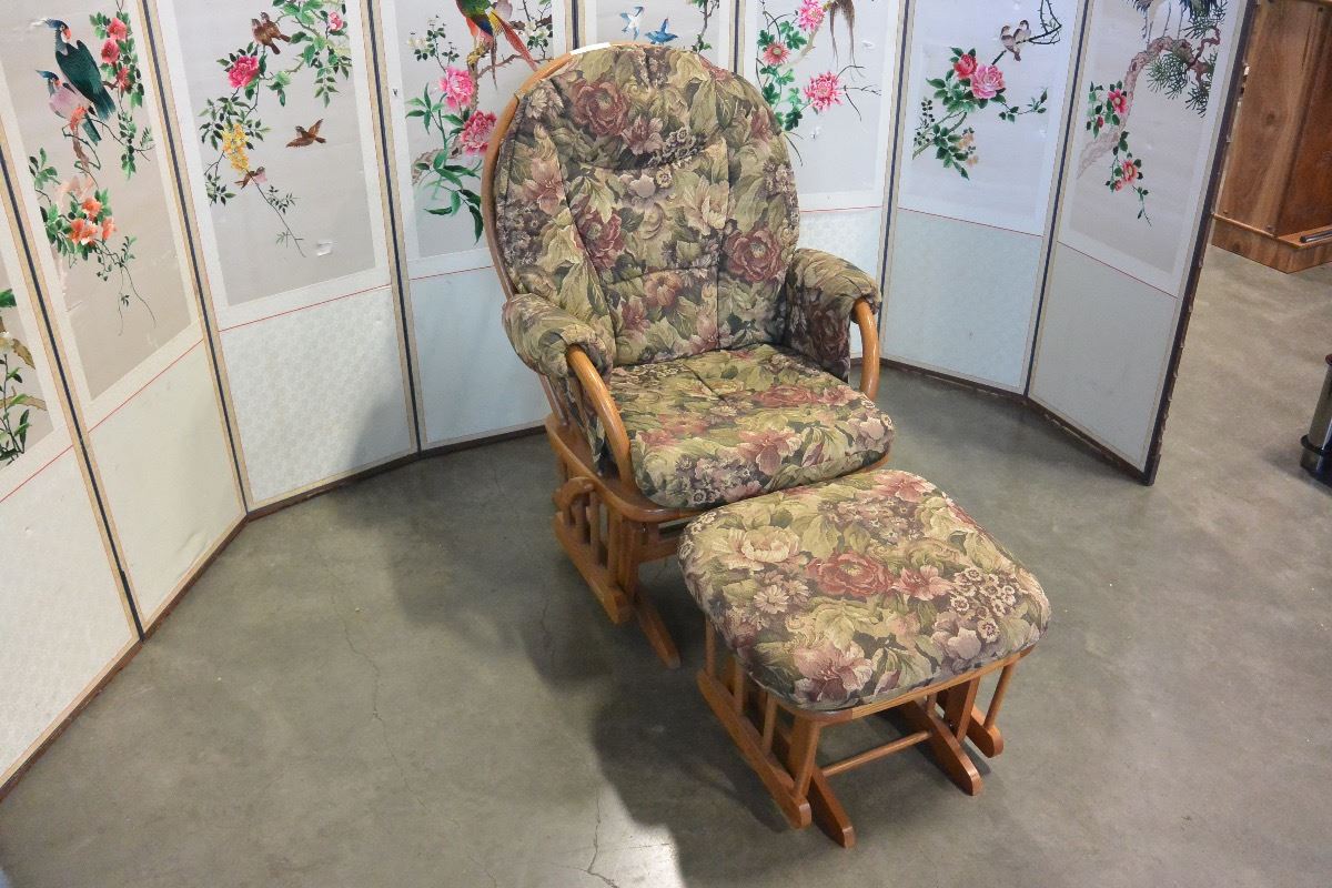 OAK FRAMED PLATFORM ROCKER AND STOOL