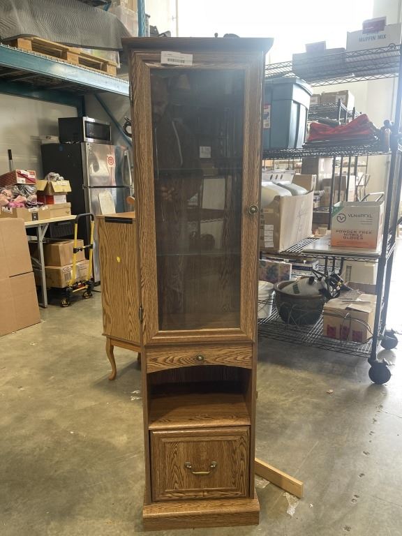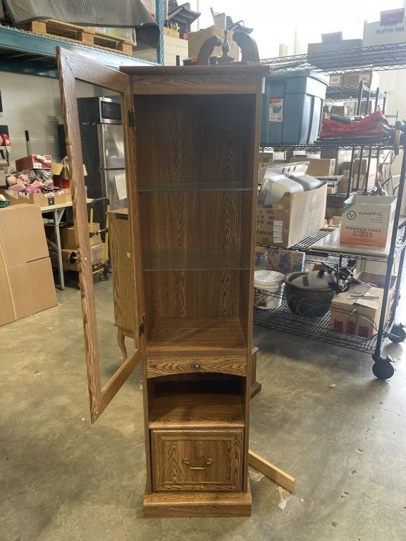 OAK GLASS DOOR DISPLAY CABINET