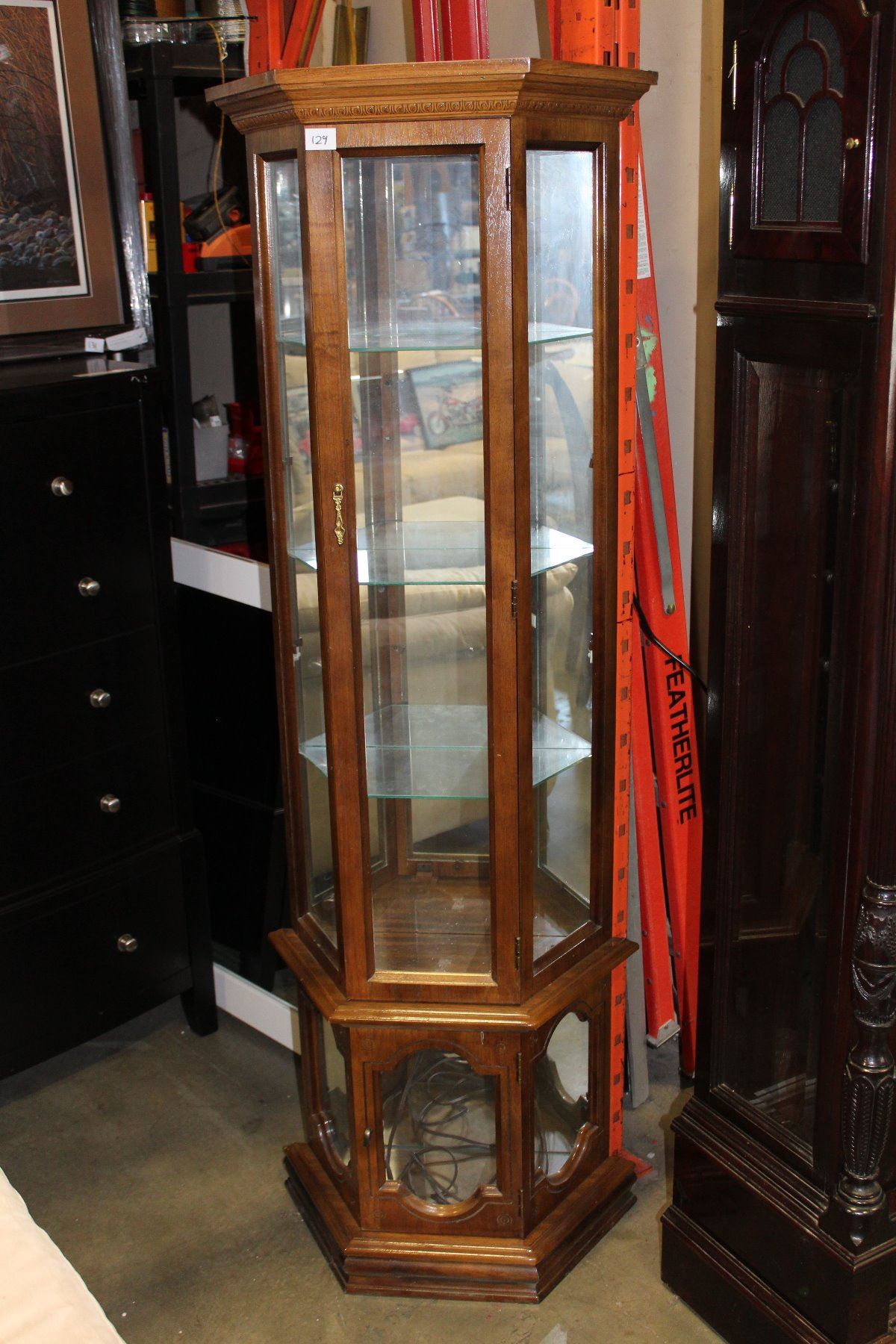 OAK GLASS DOOR ILLUMINATED DISPLAY CURIO CABINET