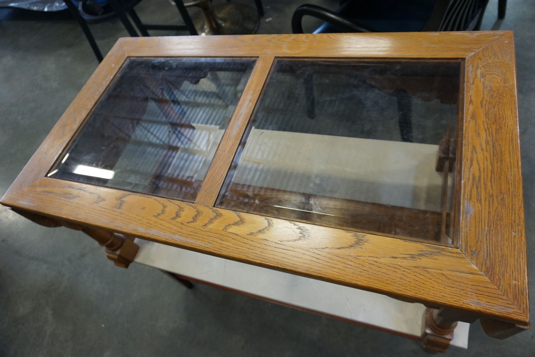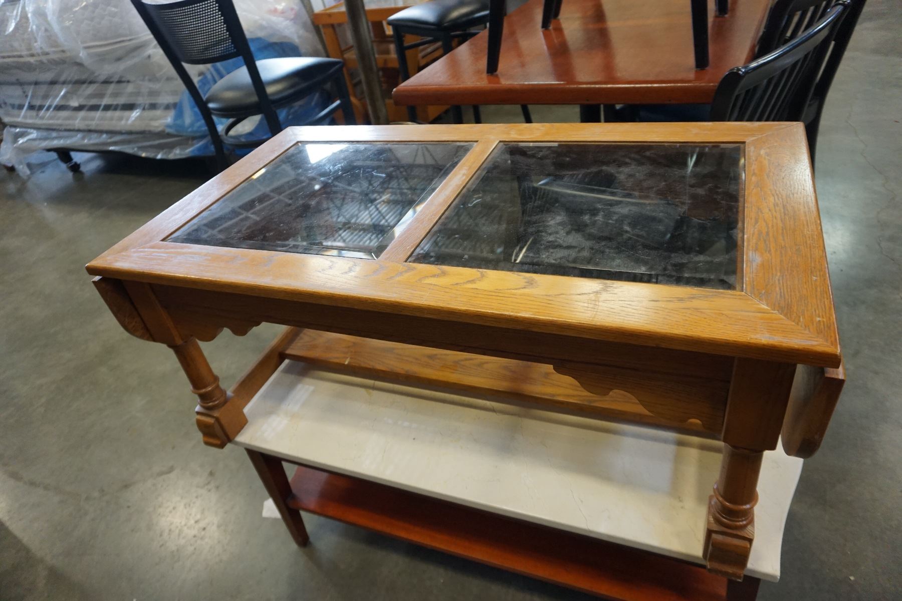 OAK GLASSTOP DROPLEAF COFFEE TABLE